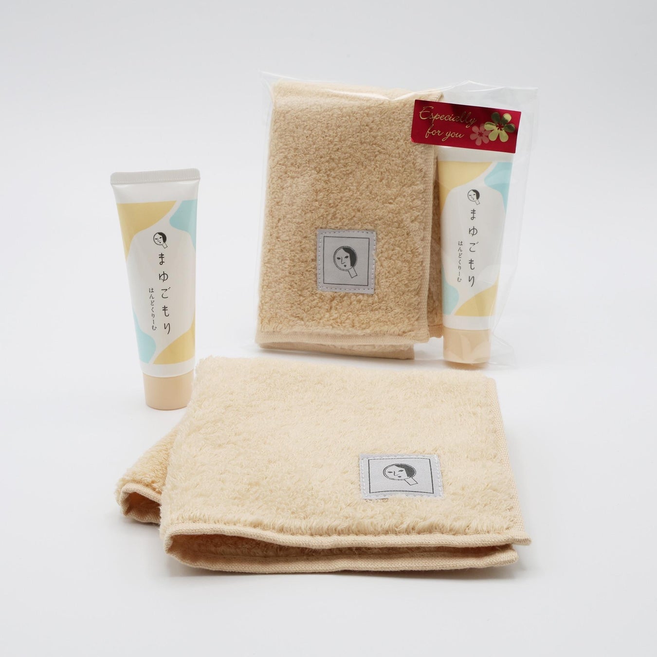 【まゆごもり はんどくりーむ・ふんわりタオルハンカチ イエロー】