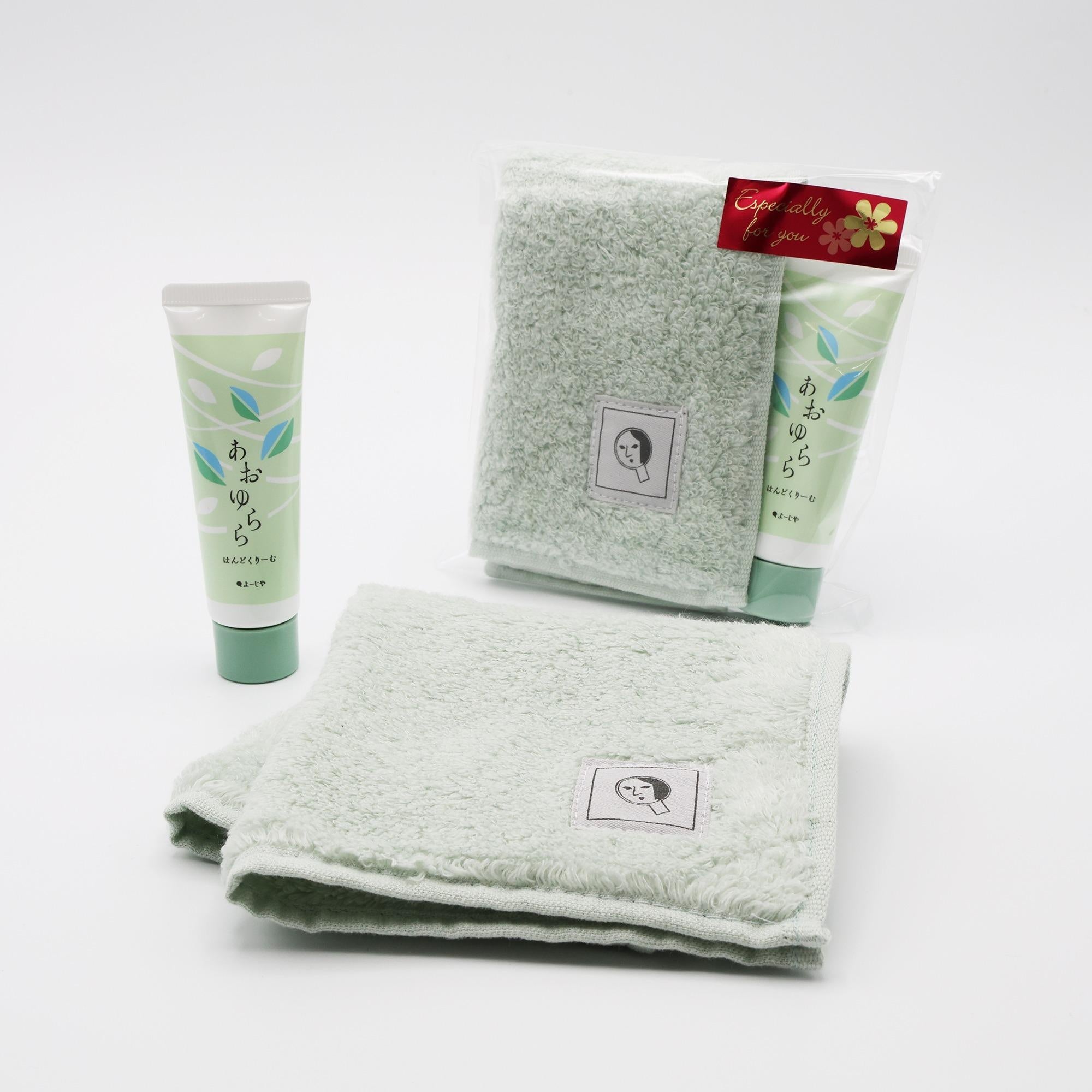 *【あおゆらら はんどくりーむ・ふんわりタオルハンカチ ミントグリーン】