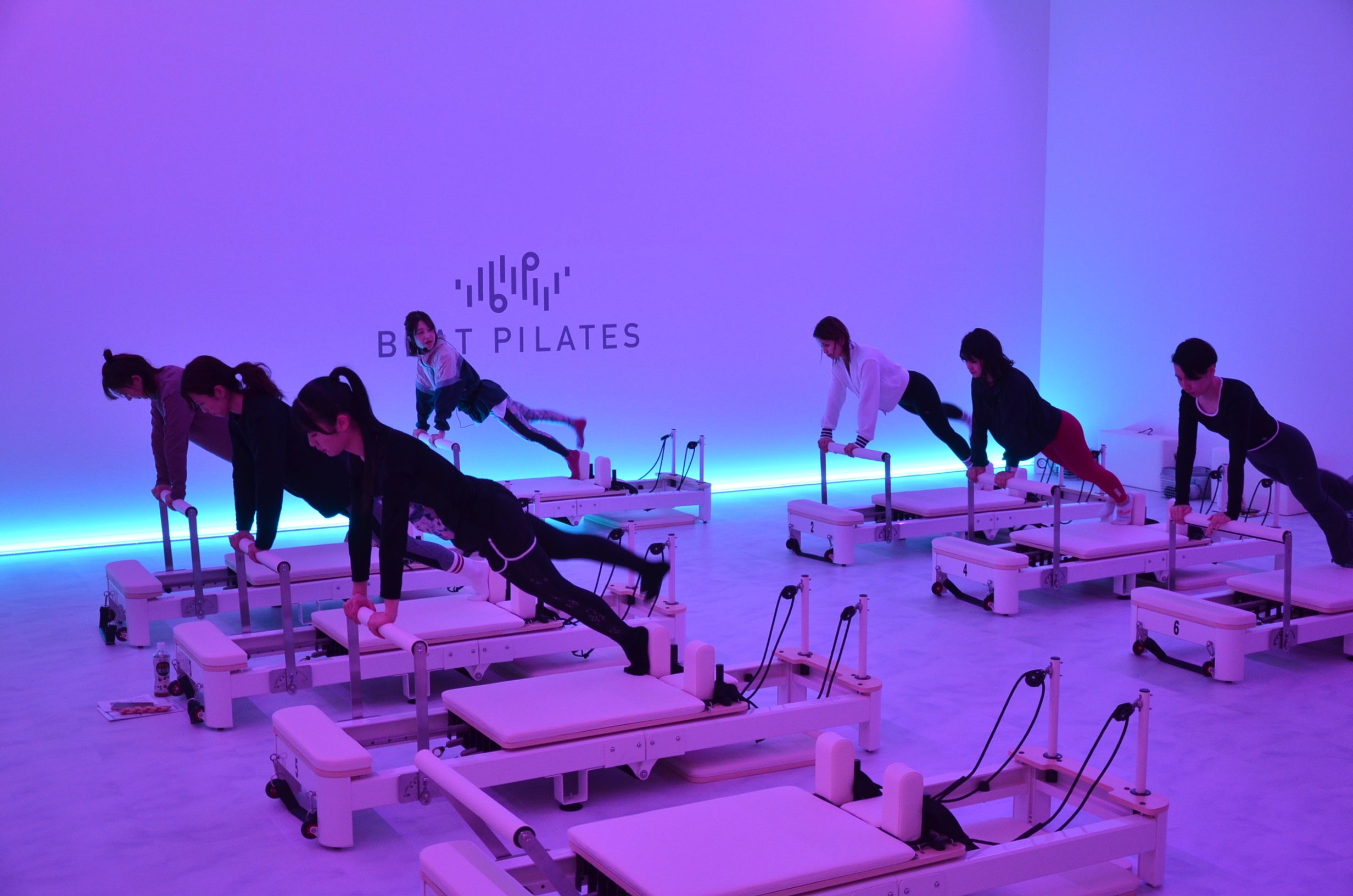 「Beat Pilates」は、日本初の暗闇系マシンピラティス専門スタジオです。薄暗いスタジオ空間で人気アーティストの音楽に合わせて身体を動かす、新感覚のピラティススタイルを提供しています。