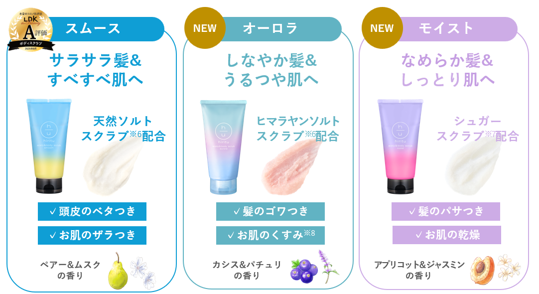 LDK the Beauty受賞のhirituスクラブに新シリーズ登場!蓄積汚れやにおいを除去!頭皮×ボディをまるごとケア!2wayスクラブでなめらかな髪と素肌へ