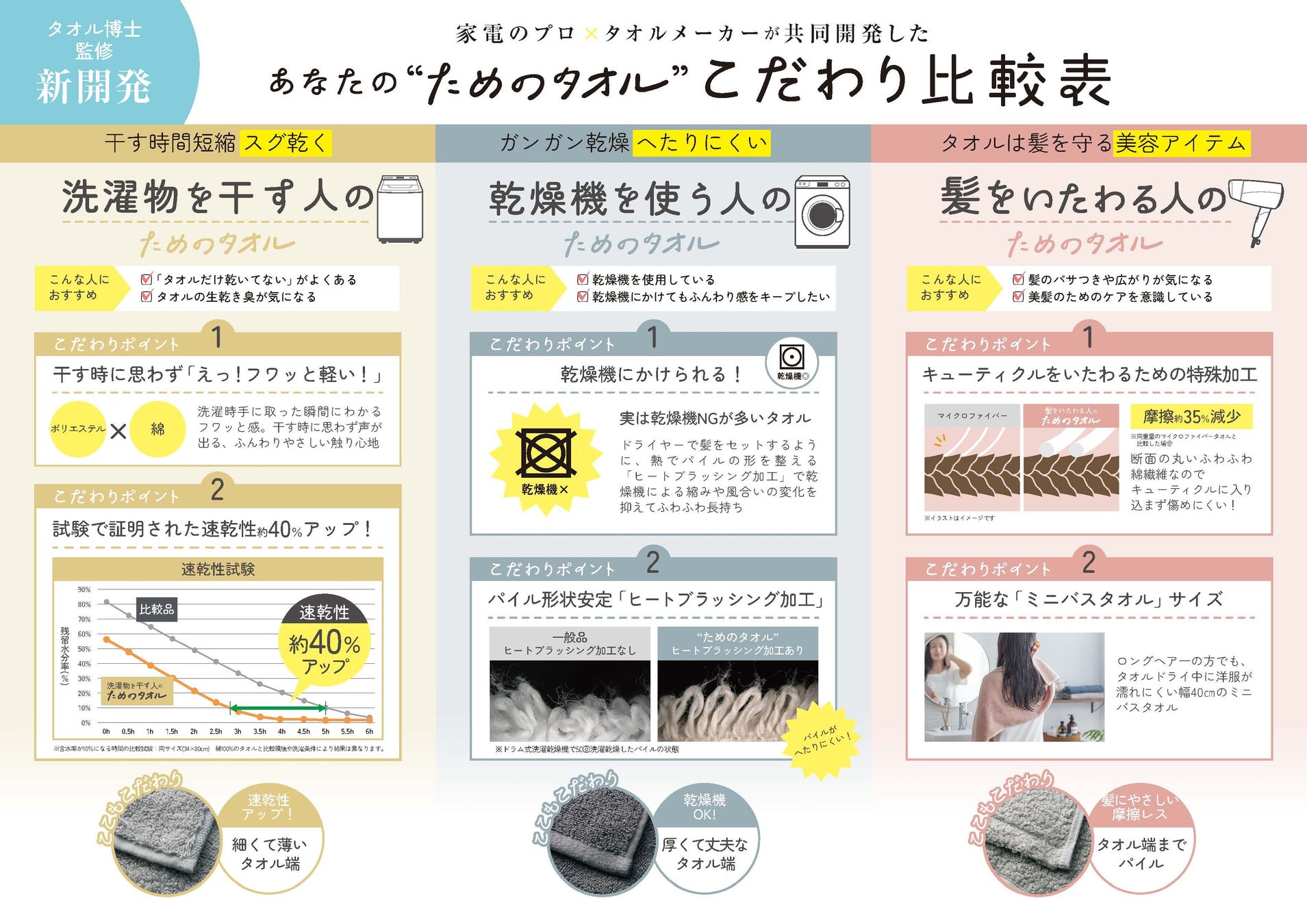 「タオルには乾燥機使用に適さないものが多い」という気づきから開発しました。