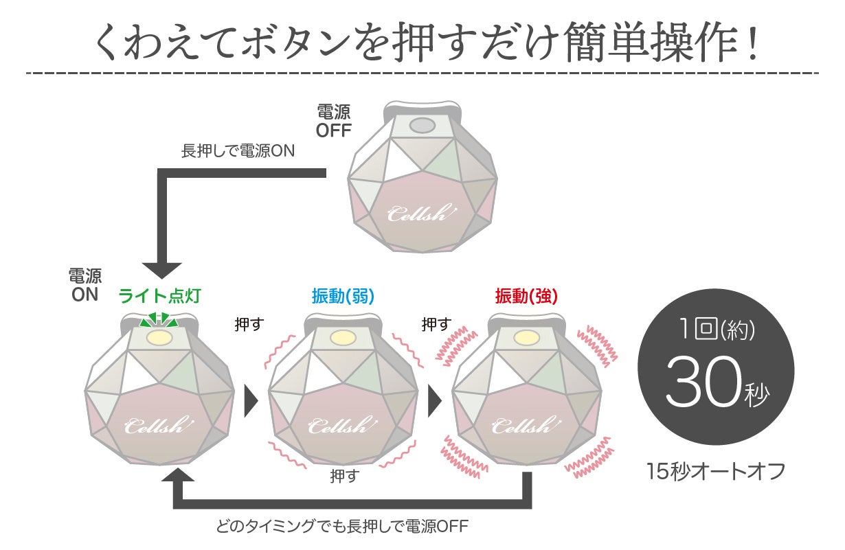 ・唇でくわえるだけ・・・スイッチONで30秒のオートトレーニング!