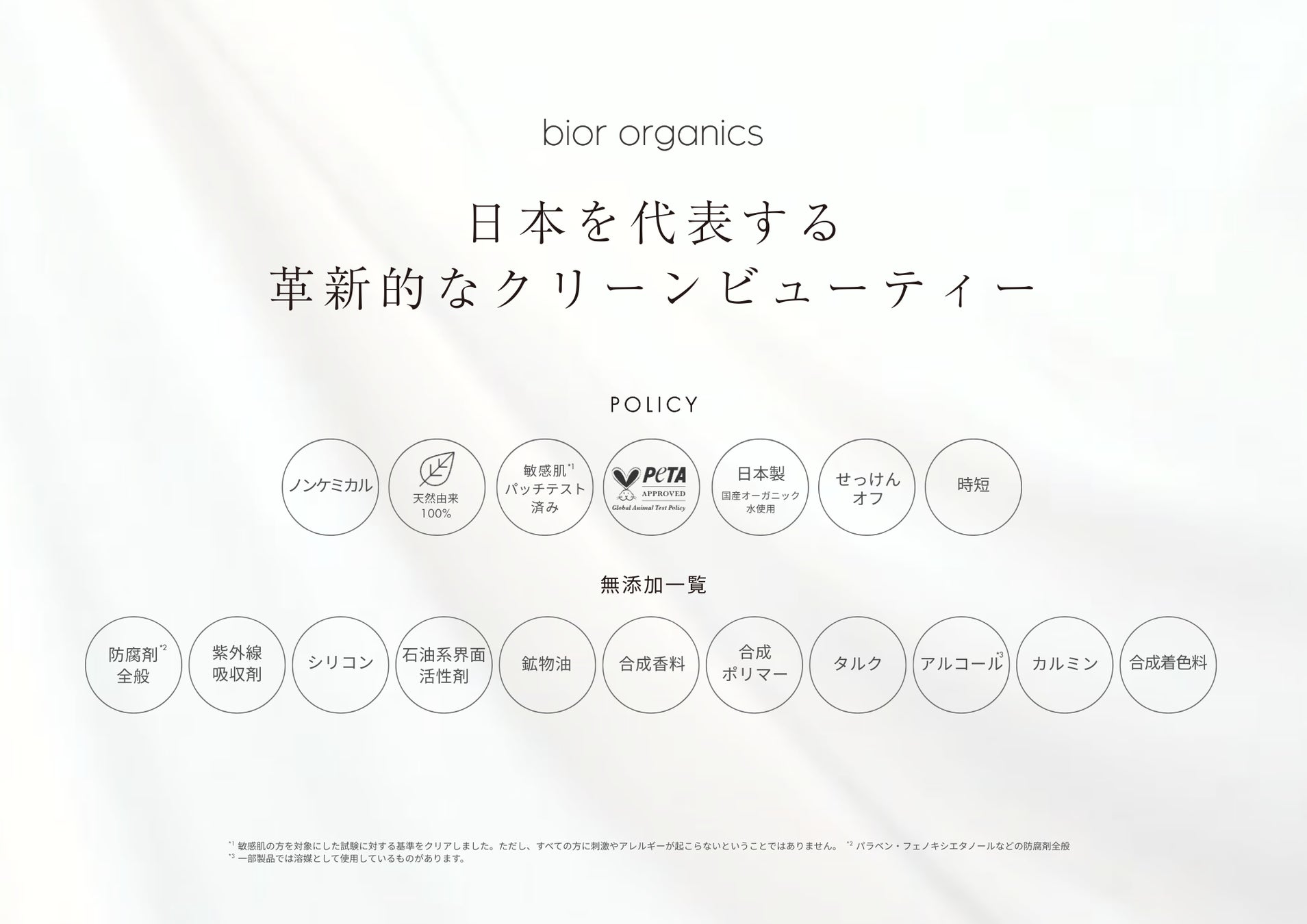 bior organics(ビオールオーガニクス)は、「機能性オーガニック」をコンセプトに掲げるコスメブランドです。すべてのスキンケア製品でエコサートコスモスのオーガニック認証を取得し、天然由来成分にこだわりながらも、確かな効果実感を追求しています。Travis Japanをブランドアンバサダーに起用し、スキンケアからメイクアップまで、クリーンビューティーの新しいスタンダードを提案しています。