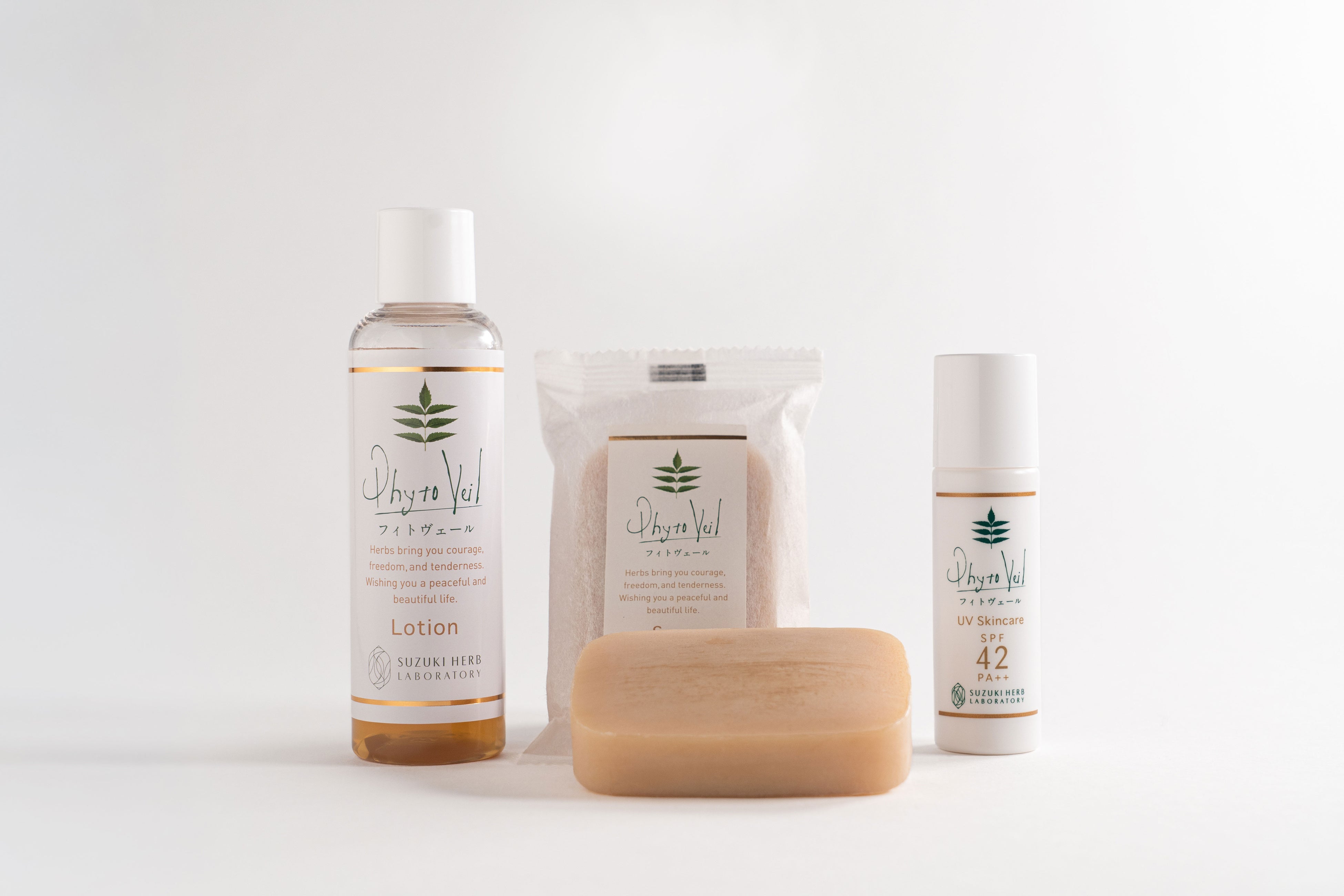 ローション(フィトヴェールローション)・固形せっけん(フィトヴェールソープ)・日焼け止め(フィトヴェールUVスキンケア42)の3種類の商品から構成されているシリーズです。