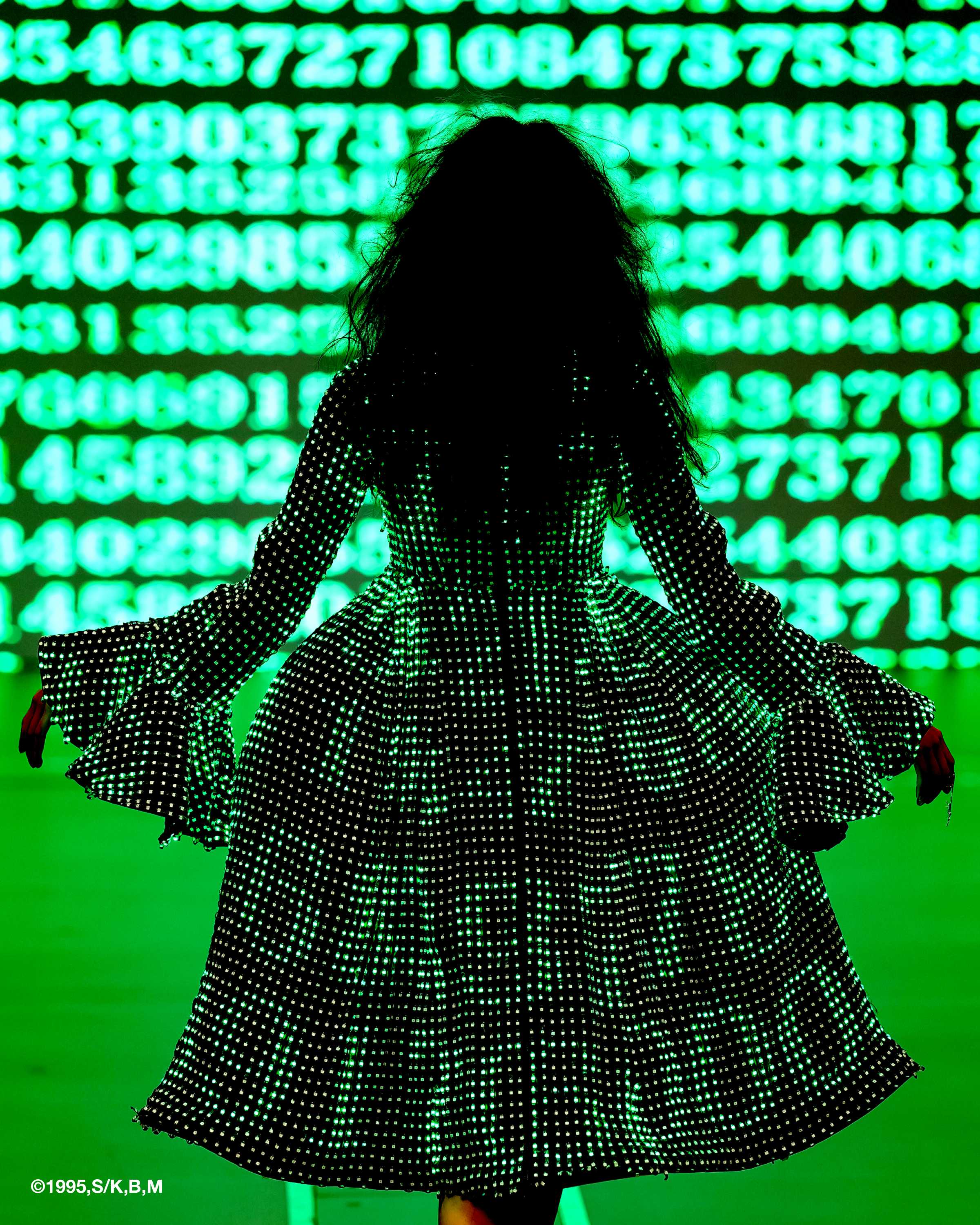 今回のコレクションテーマは「GHOST」です。世界的にも評価の高いSF作品「攻殻機動隊 GHOST IN THE SHELL」とのコラボレーションを通じて、作中に登場する透明化技術「光学迷彩」の概念を現実の衣服に実装しました。「目に見えないけれど確かに存在しているもの」に着目し、作中で描かれる「シェル(身体)とゴースト(魂)」や「AIと人間」といった境界が曖昧な概念をコレクションに投影。見る角度や環境によって輪郭が変化する「不可視性」を表現することで、身体と風景の境界を揺るがし、衣服が都市や空間に溶け込むような新たな視覚体験を発表しました。