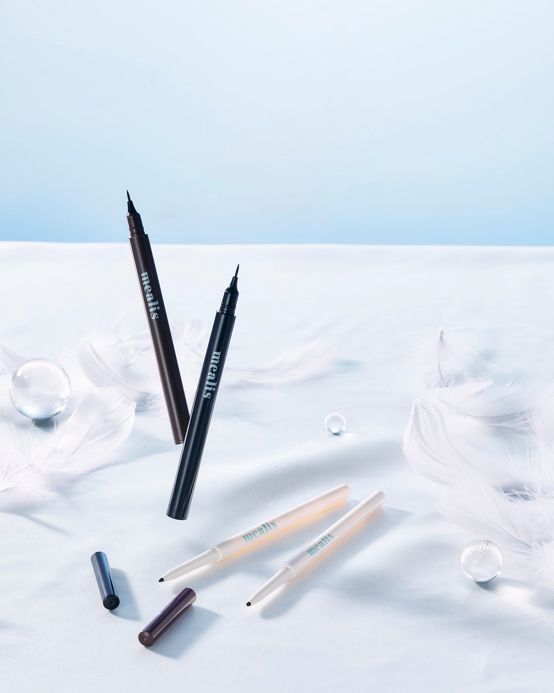 初心者でも描きやすい極細フェルトタイプのリキッドアイライナー。ウォータープルーフ処方でにじみにくく、目尻の跳ね上げや目頭の切開ラインもきれいに描けます。