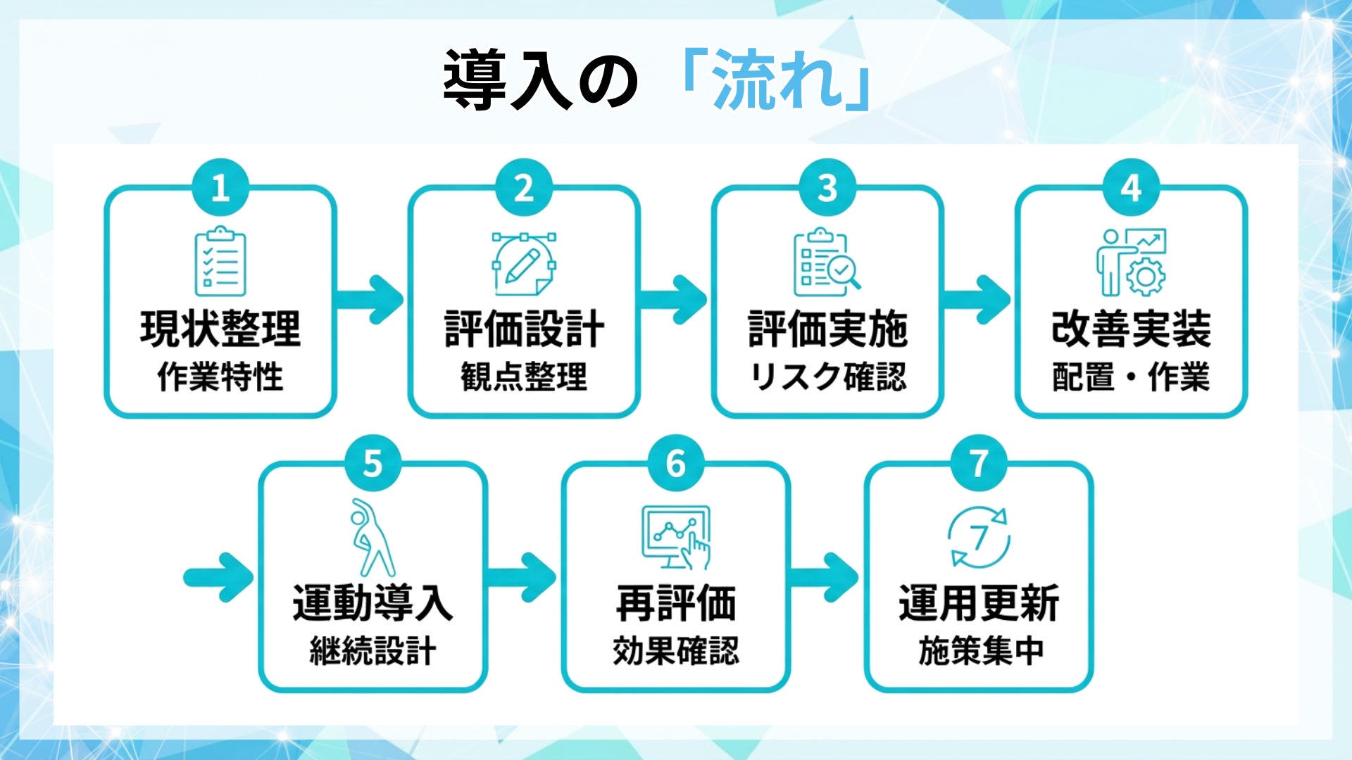 ・短時間で継続できるメニューと安全配慮で、現場運用に組み込み