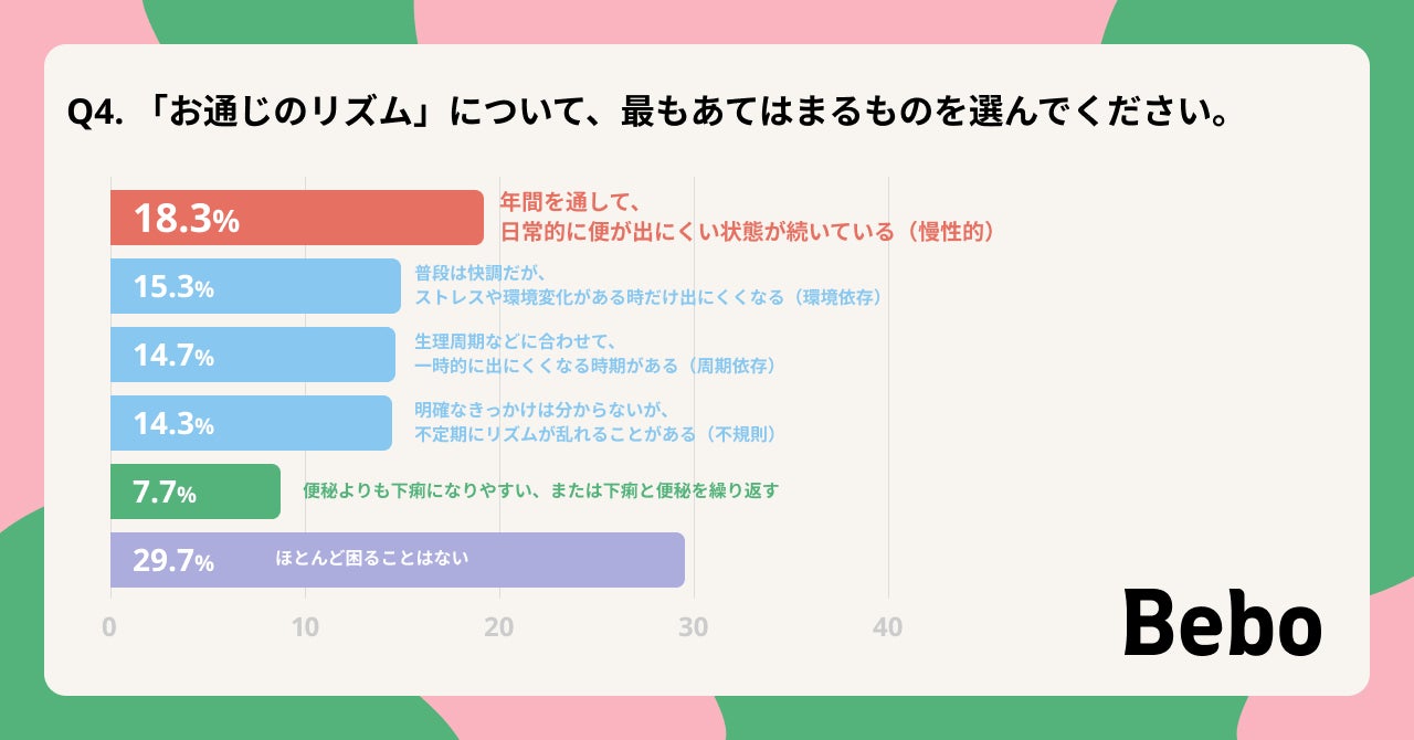 女性の2人に1人が抱える“ゆらぎ便秘”、春の環境変化や「花粉症の薬」が影響か? Bebo、お腹の不調に関する調査を実施