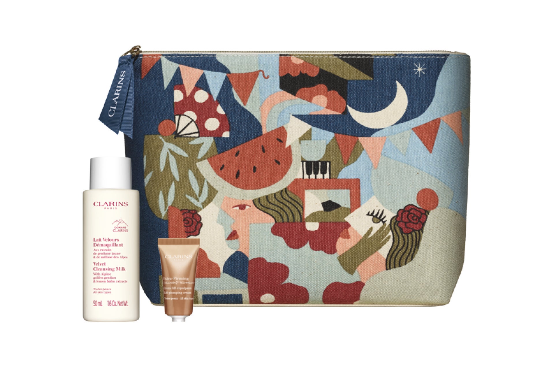 イベント期間中、会場にてメイクアップ製品を含む15,400円(税込)以上お買い上げのお客さまに、「ベルベット クレンジング ミルク」50mL、「ファーミング EX クリーム オールスキン」5mLをセットにした、オリジナルポーチをプレゼントいたします。