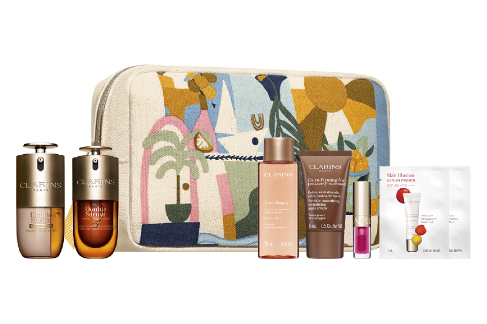 セット内容 ダブル セーラム ファンデーション 30mL(現品)、ダブル セーラム ADC 30mL(現品)、ファーミング EX トリートメント エッセンス ローション N 50mL、ファーミング EX ナイト クリーム オールスキン 15mL、リップコンフォートオイル 02 ラズベリー 1.4mL、スキン イリュージョン セラム プライマー サシェサンプル 2枚、オリジナルポーチ