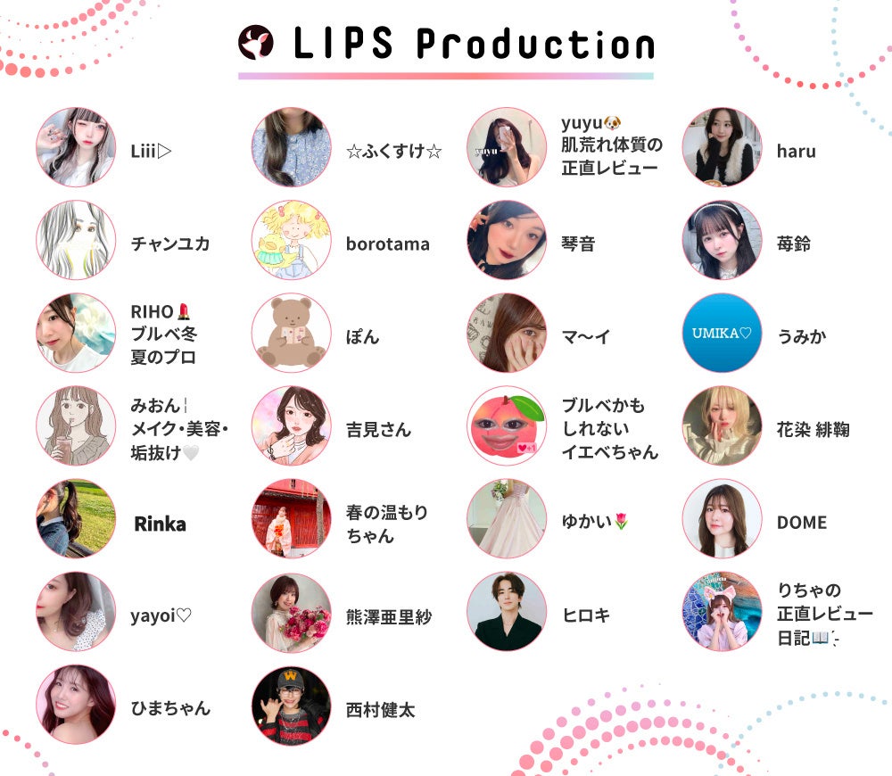 「LIPS Production」所属のLIPS専属クリエイターリスト
