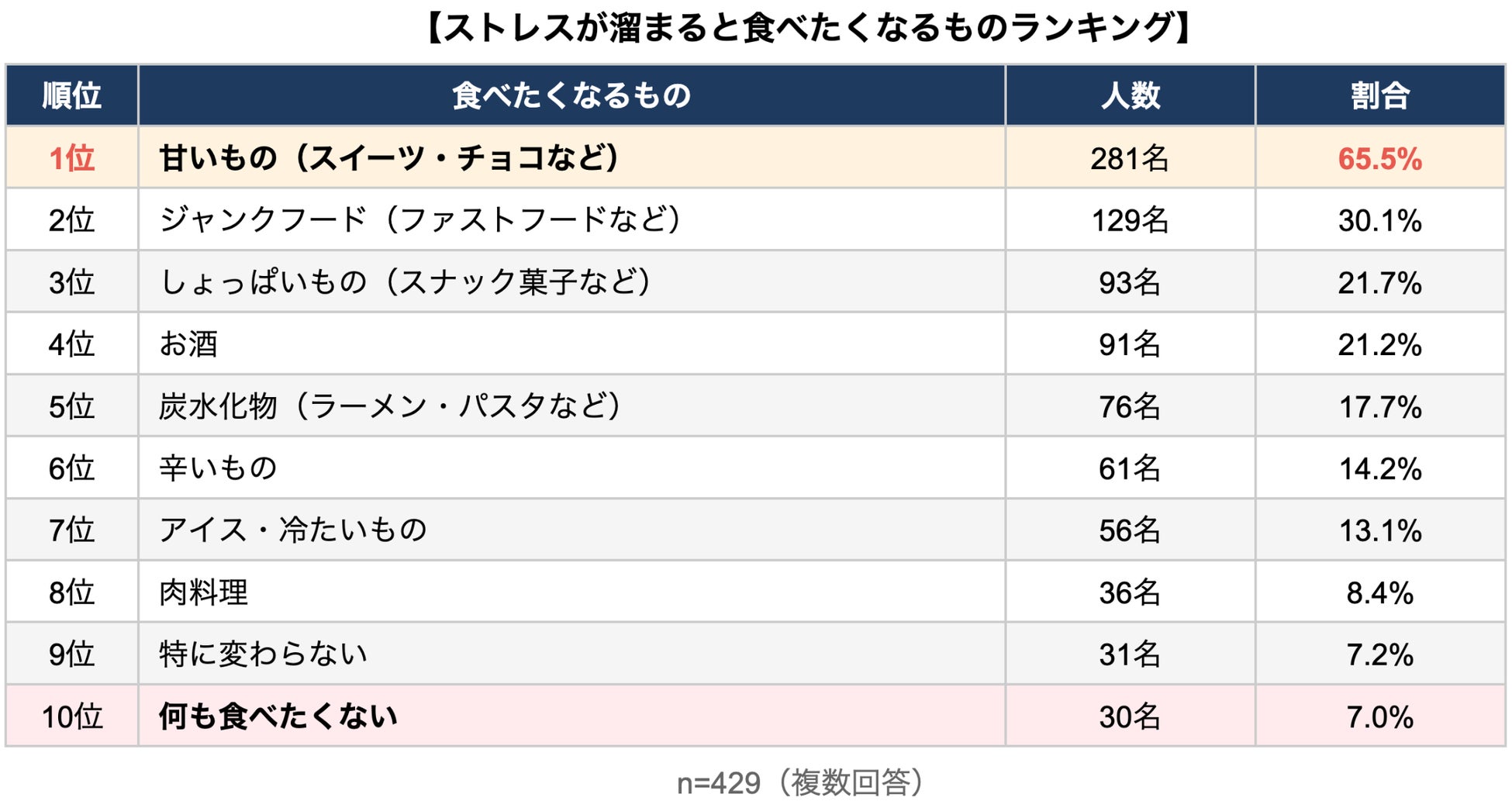 調査結果① ストレス時に食べたくなるものランキング