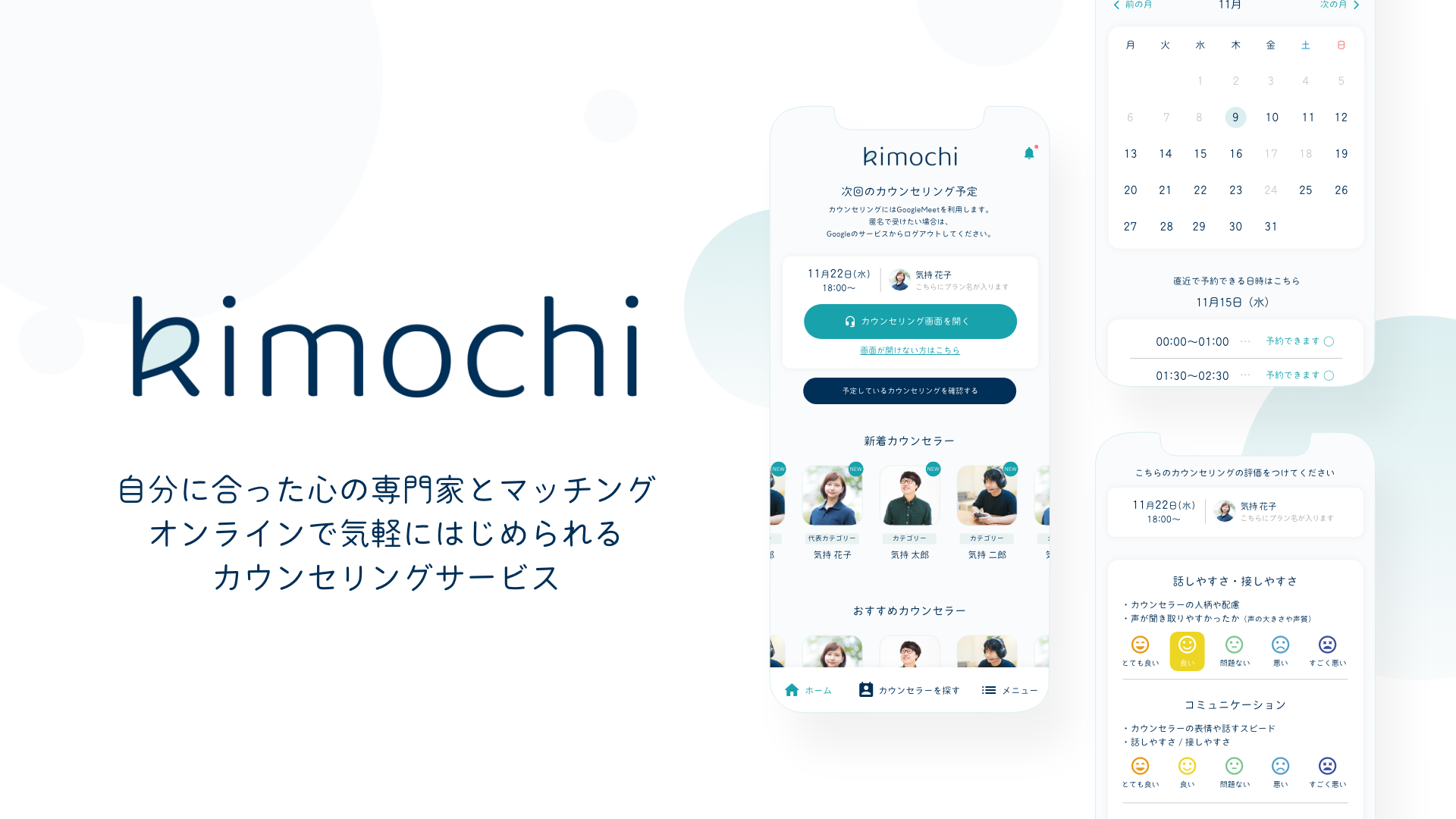 株式会社rementalが運営するオンラインカウンセリング「Kimochi」は、公認心理師100%在籍・利用者満足度96%のメンタルケアサービスです。