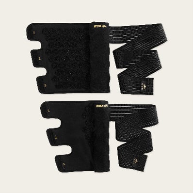 また、一枚仕立てのエラスティック素材(伸縮性のある生地)を採用しているため、すべてのスパイクに均一に圧がかかりやすく、巻く強さに応じて心地よいフィット感に調整していただけます。