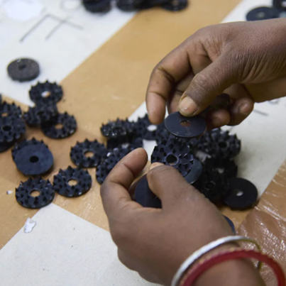 Shakti Matは、すべてインドの女性職人によって一つ一つ丁寧に手作りされています。