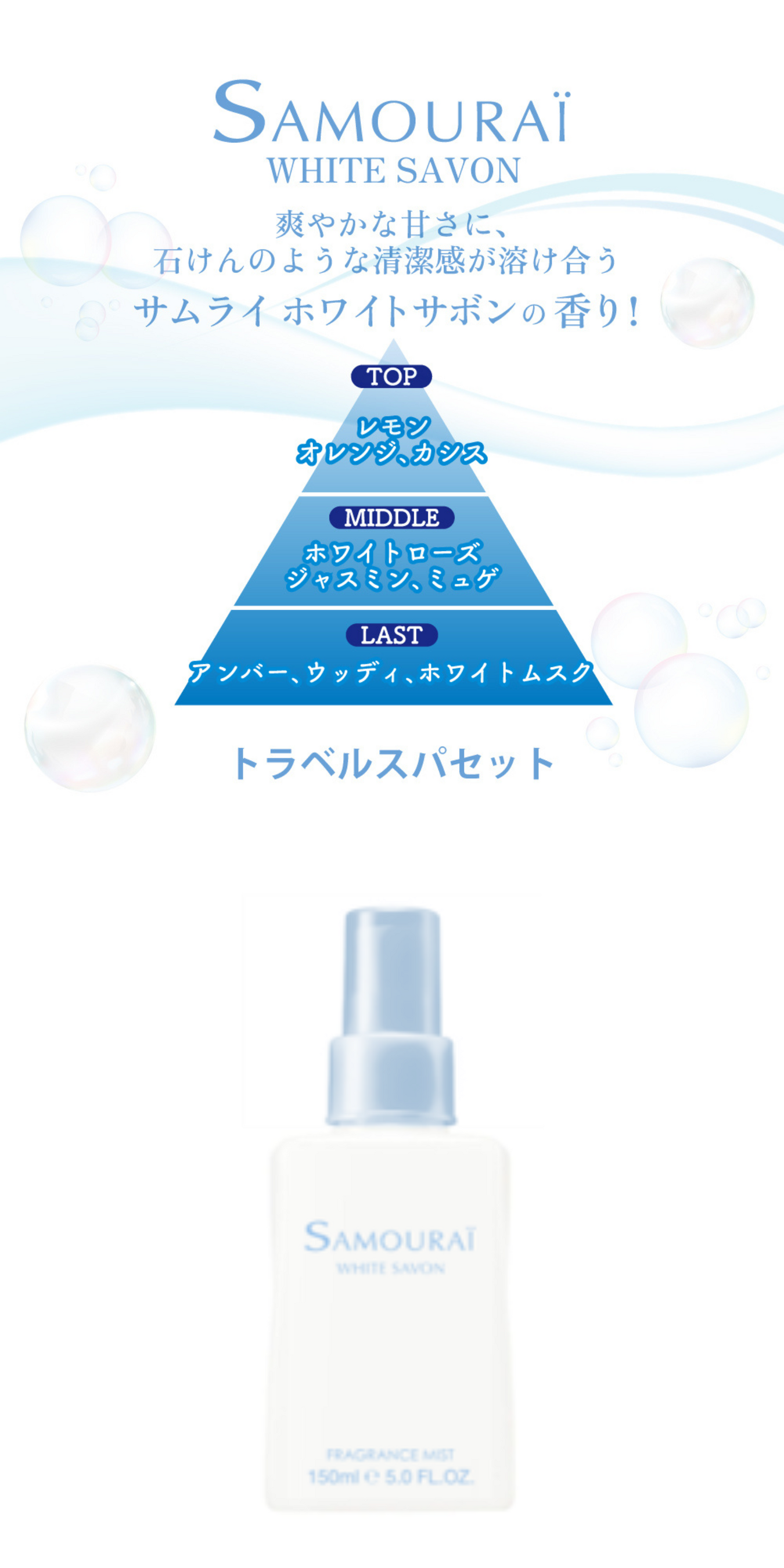 ■ 商品特長 サムライ ホワイトサボン トラベルスパセット