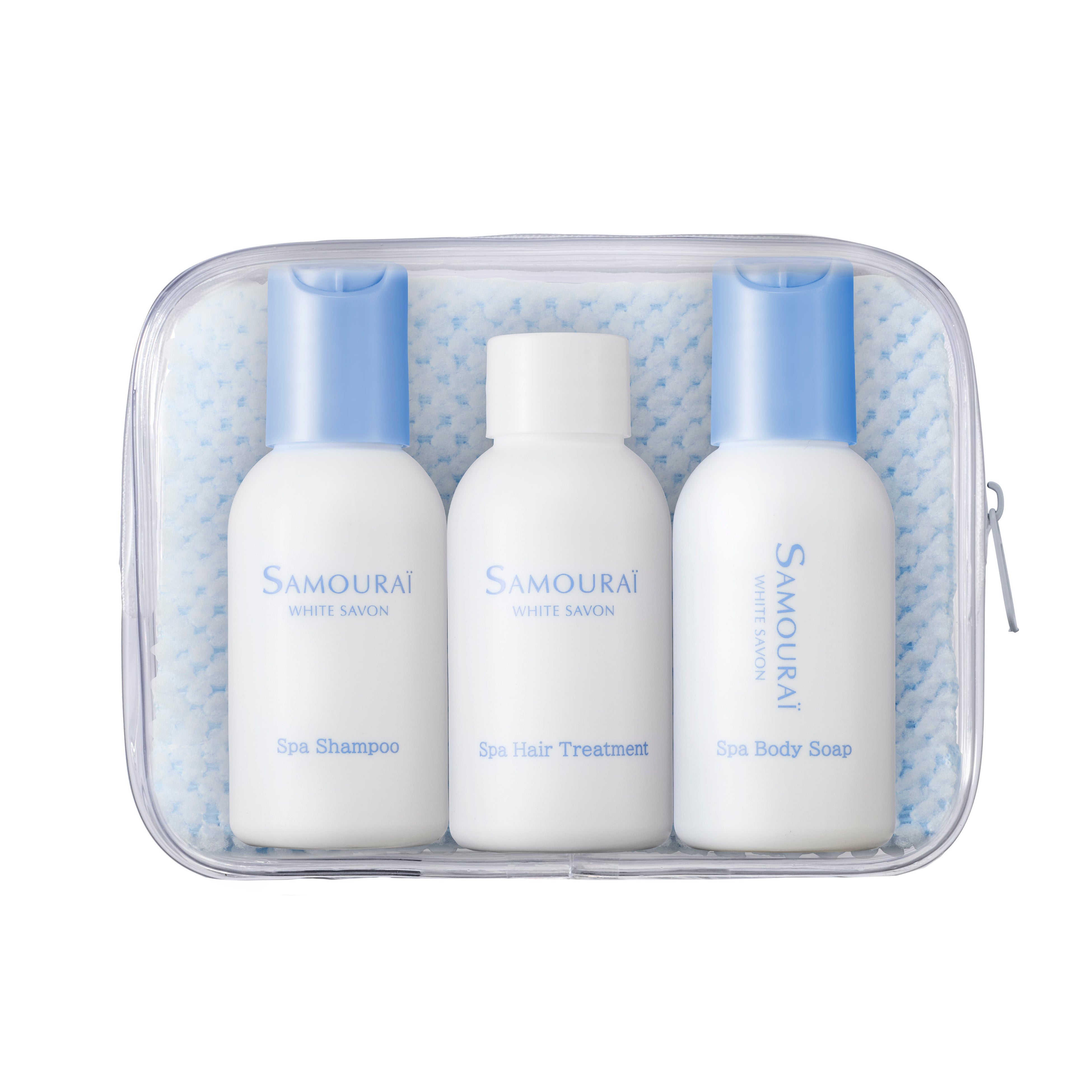 本商品は、スパ シャンプー、スパ トリートメント、スパ ボディソープ、ボディタオルをセットにしたトラベルスパセットです。爽やかな甘さに、石けんのような清潔感が溶け合う「サムライ ホワイトサボン」の香りとともに、旅先や外出先でも全身をすっきりと整える心地よい時間を提案します。香りを楽しみながら、髪・地肌・肌までケアできる、サムライならではの新しいセットアイテムです。