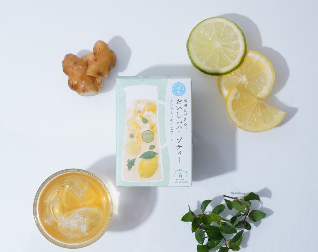 ペパーミント、ジンジャー、ルイボスなどのハーブに、レモンとライムが香るさっぱりとした味わい。