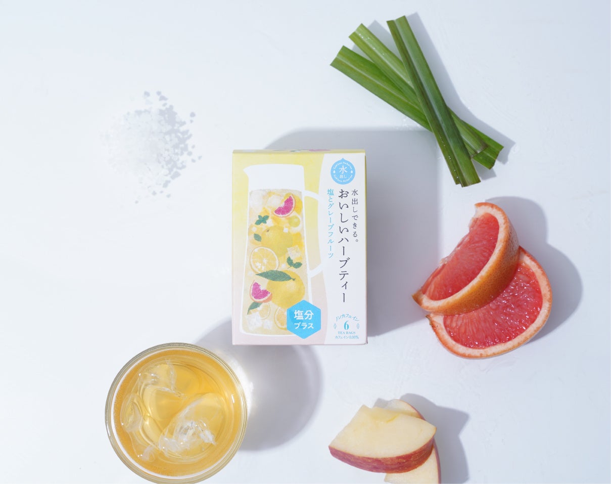 ホワイトハイビスカスやレモングラスに、ジューシーなグレープフルーツが香るすっきりとした味わい。塩分をプラスしているので、スポーツやアウトドアにも。