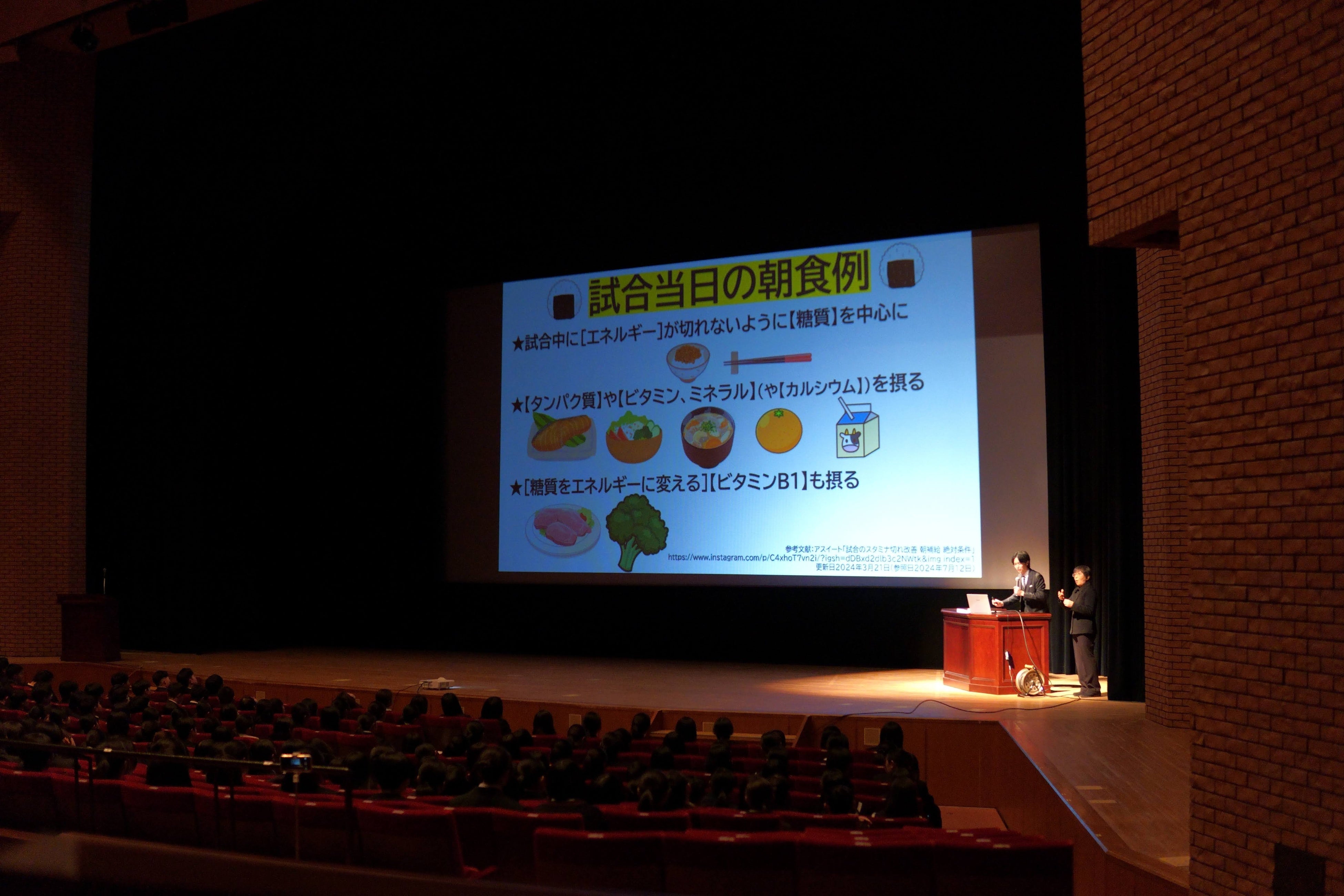 今回の講演では、若いアスリートが日常の中で実践できる健康管理や食事、身体づくりについてお伝えしました。