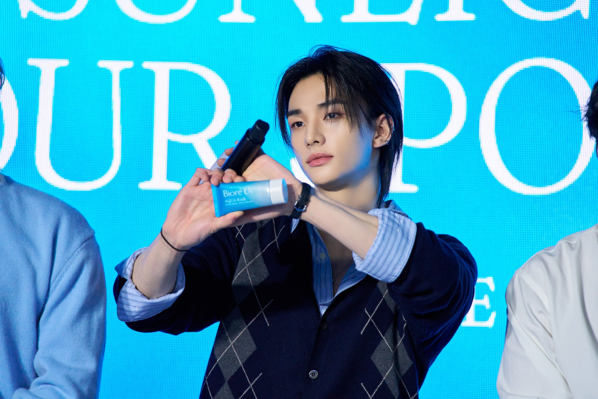 また、Hyunjin(ヒョンジン)は、フィルム中のビオレ UVのボトルを投げてキャッチするシーンについて振り返り「あれは実はCGです・・・というのは嘘なのですが(笑)、実は一回で成功しました。いまでも一回でできると思いますよ」と話すと、MCから「ぜひ今やってみてください、みなさんみたいですよね?」と振られ、ステージでボトル投げを披露する展開に。無事Hyunjinがキャッチに成功すると、会場からは大きな拍手が起こりました。続いてFelixも同じく成功し、会場が沸きあがりました。