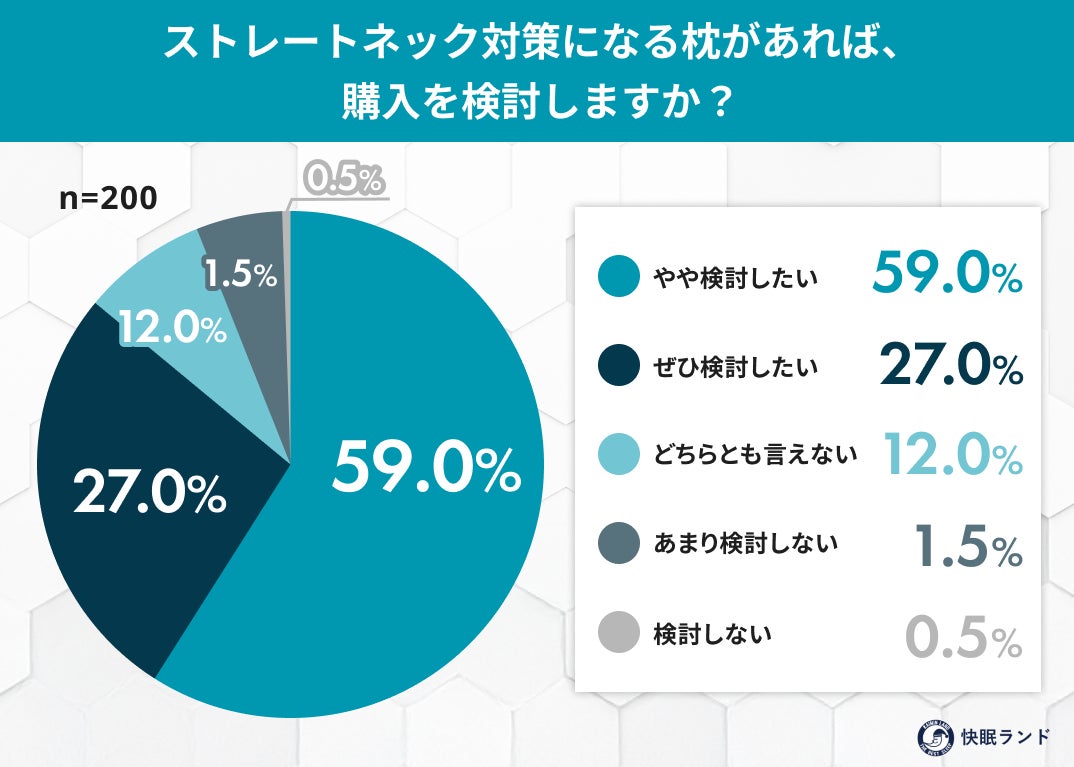 • 高い購入意向: 対策枕があれば「購入を検討したい」という回答は86.0%に達する