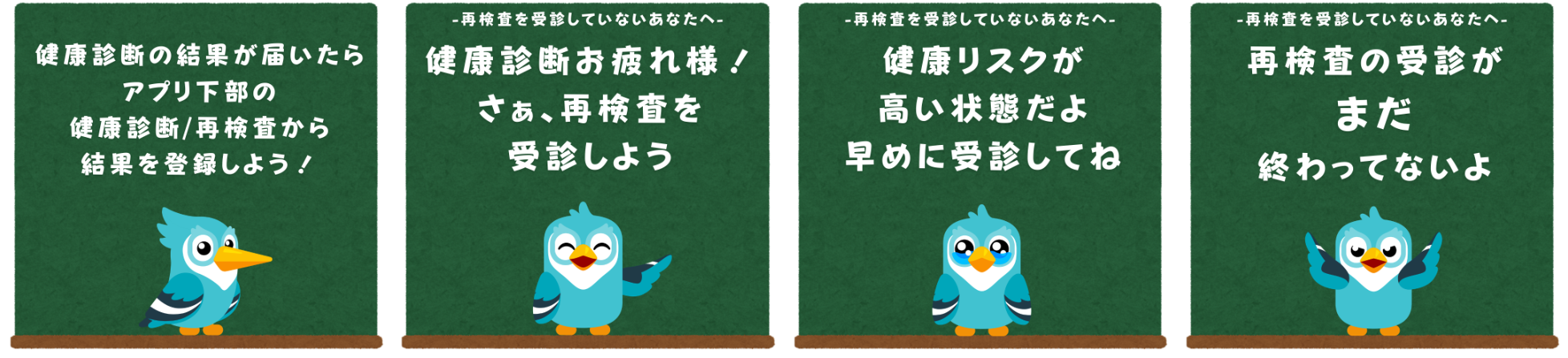 従業員の進捗状況に応じて、健康診断結果入力のリマインドや受診勧奨を自動でプッシュ通知します。