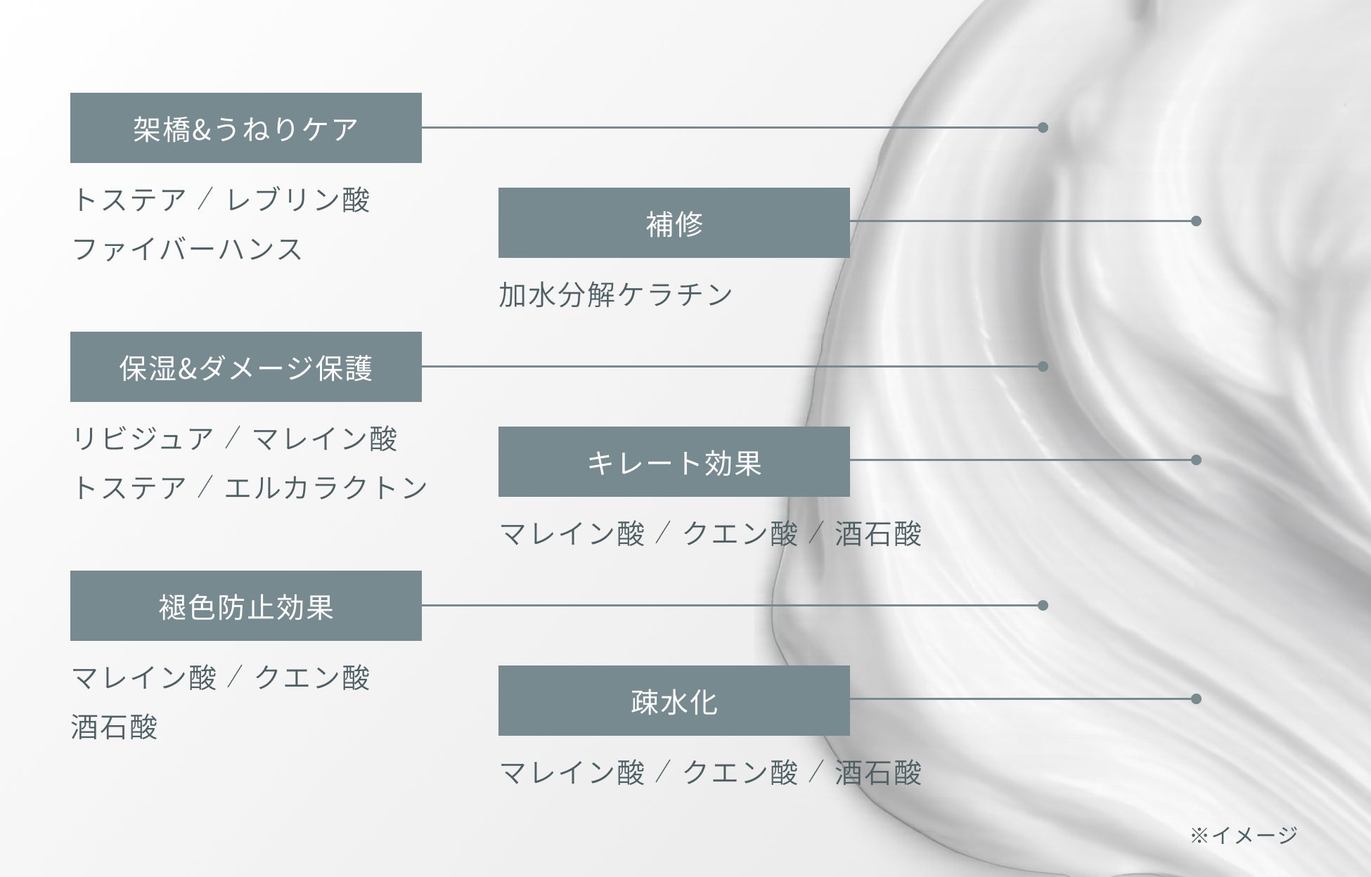 しかし近年、ハイトーンカラーや日常的なアイロン使用の定着により、お客様の髪のダメージ履歴は複雑化しています。現場からは、従来のケアに加えて「熱ダメージ」「褪色」「ダメージによるうねり」など、複合的なお悩みへの対応を求める声が数多く寄せられていました。