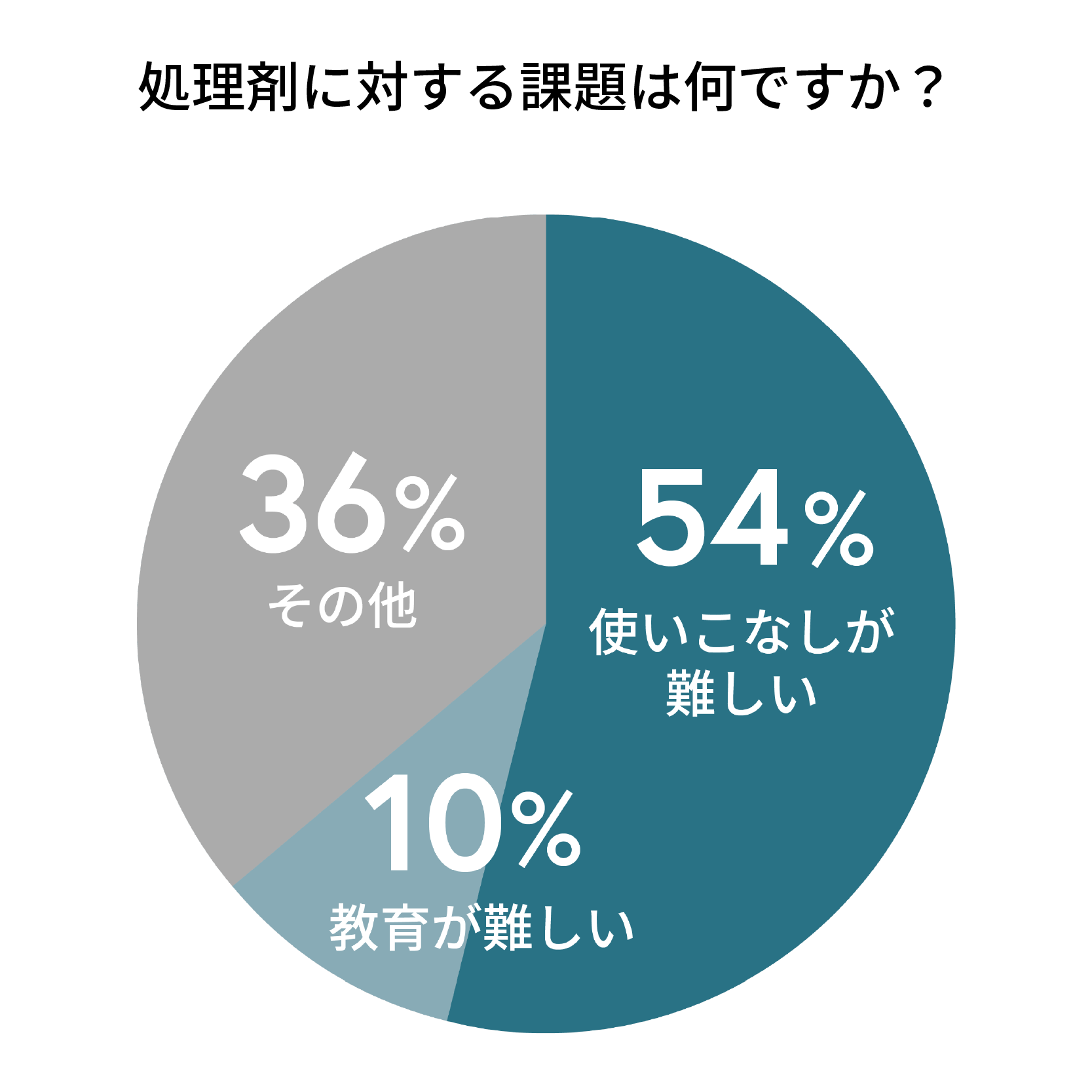 一方で、これら多様なニーズに応えようと処理剤の用途が細分化された結果、美容室の現場の負担が増加しています。当社が実施した調査では、54%の美容師様が「処理剤の使いこなしが難しい」と回答。さらに、別の設問で、具体的な負担について調査したところ、「コストの増加(56%)」や「工程の多さによる時間の圧迫(16%)」が切実な課題として浮き彫りになりました。