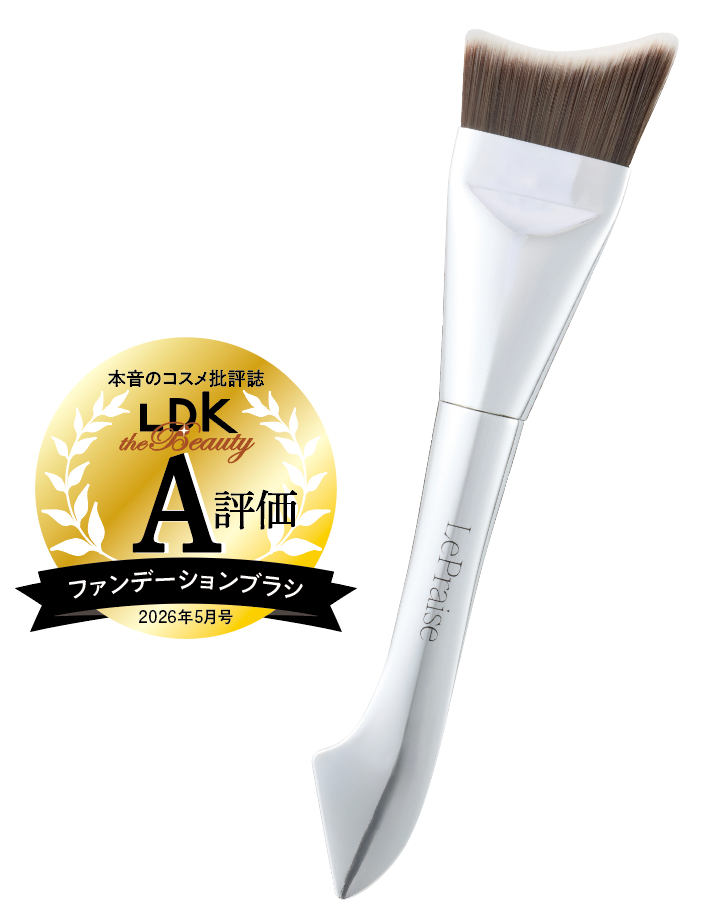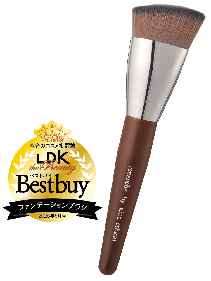 テクニック不要でプロ級の仕上がりを叶えるという高密度のファンデブラシ。肌に当たる面が広くて弾むような弾力はスポンジのよう。「リキッドはなめらかに塗れ、クリームは均一に伸びるので、誰でも光沢感のあるフラットな仕上がりになります」とプロも太鼓判! しっとりとした毛質で、肌あたりがやさしく使い心地にも大満足です。