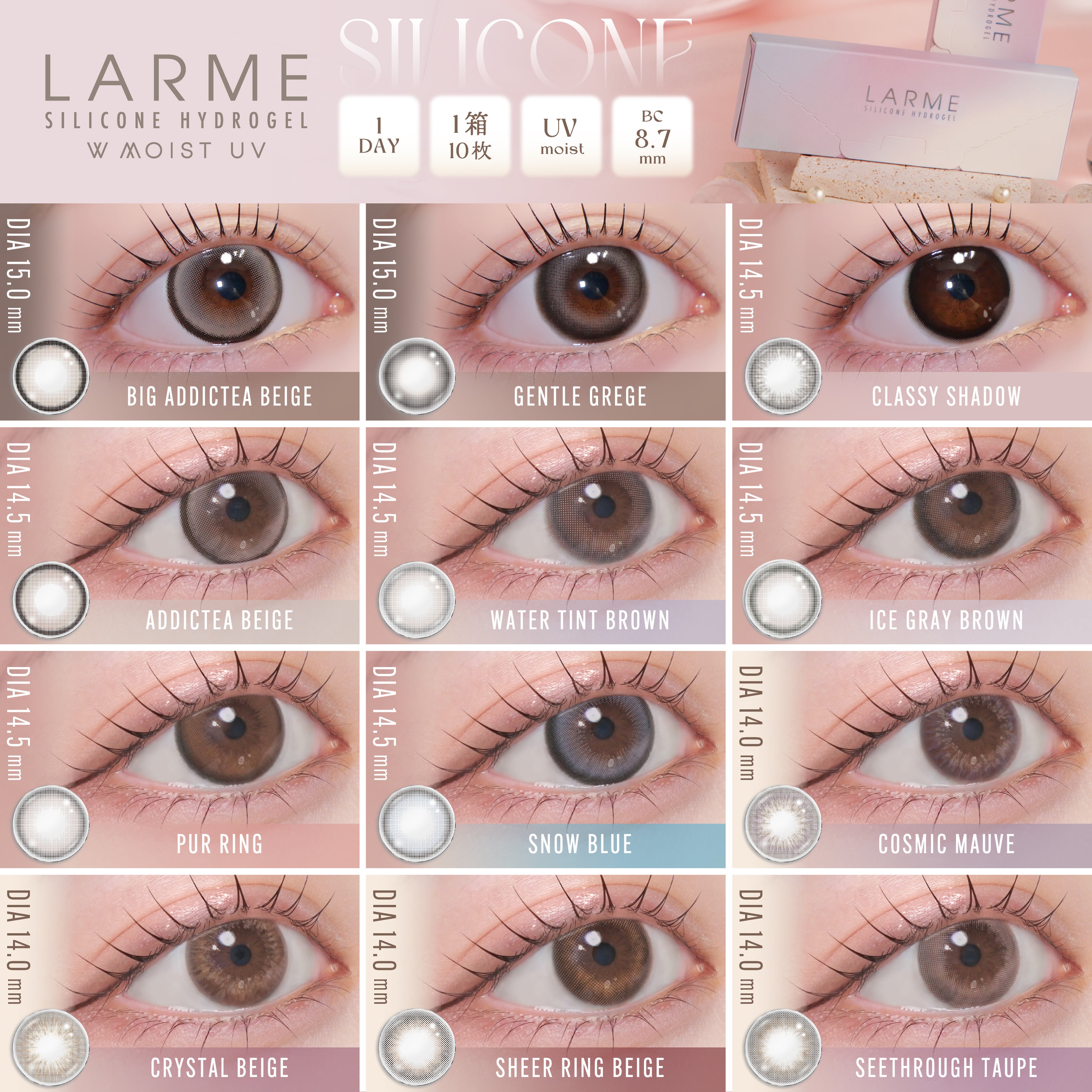 株式会社エース(本社:東京都港区、代表取締役:山下雅史)は、池田エライザさんイメージモデルのカラーコンタクトブランド“LARME SILICONE HYDROGEL W MOIST UV 1DAY” <ラルム シリコーンハイドロゲル ダブルモイストUV ワンデー>から【回らない水光】新色5色を2026年3月30日(月)11:00より発売いたします。