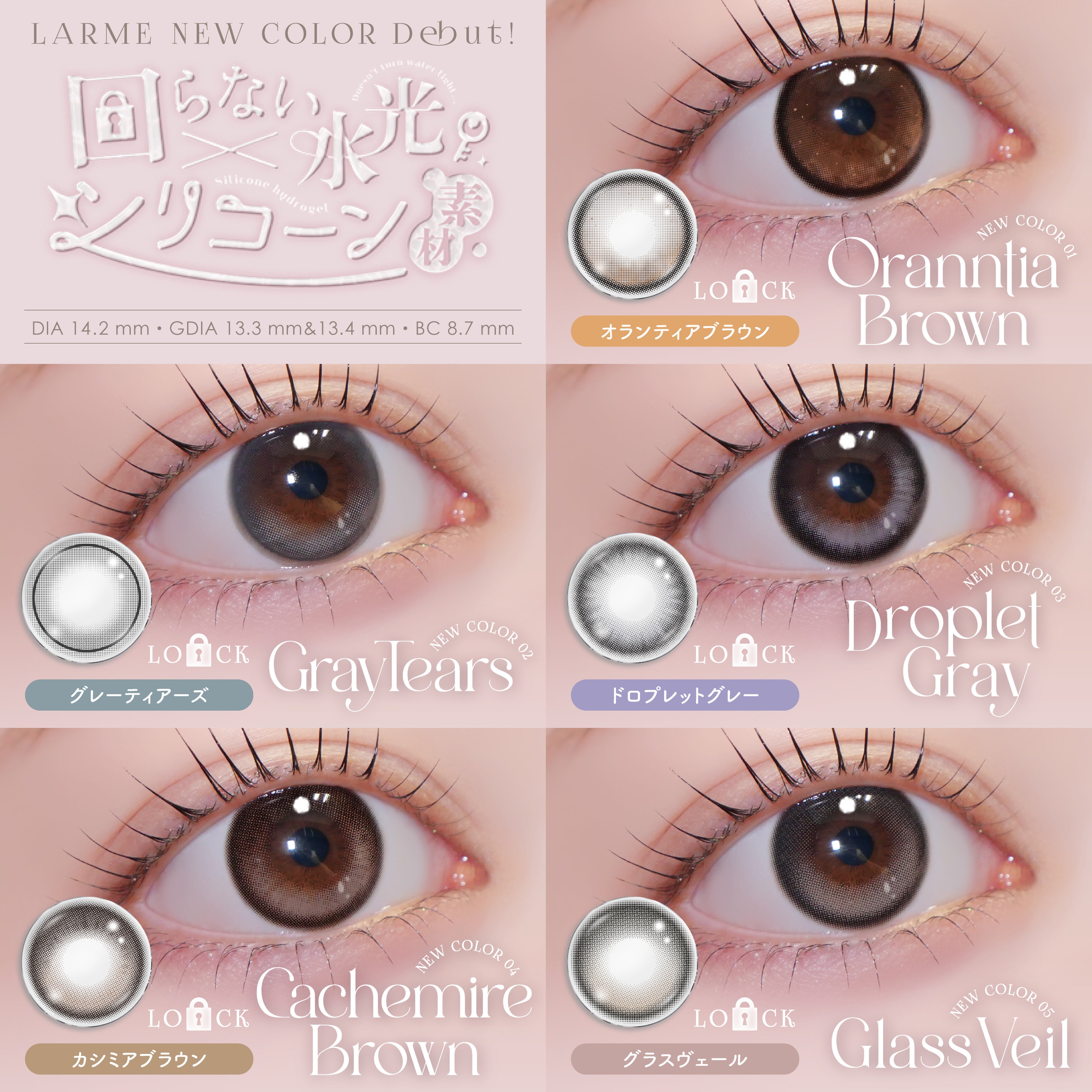 今SNSやZ世代を中心に話題の“回らない水光”カラコンが5色新登場。