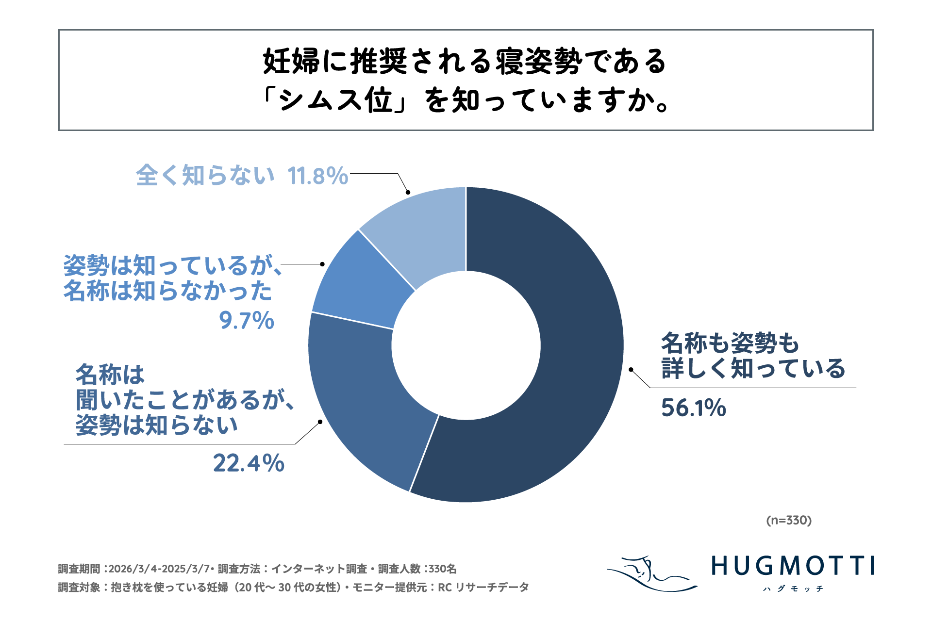 抱き枕を使っている妊婦の55%以上が、妊婦に推奨される寝姿勢「シムス位」について、名称も姿勢も詳しく知っている
