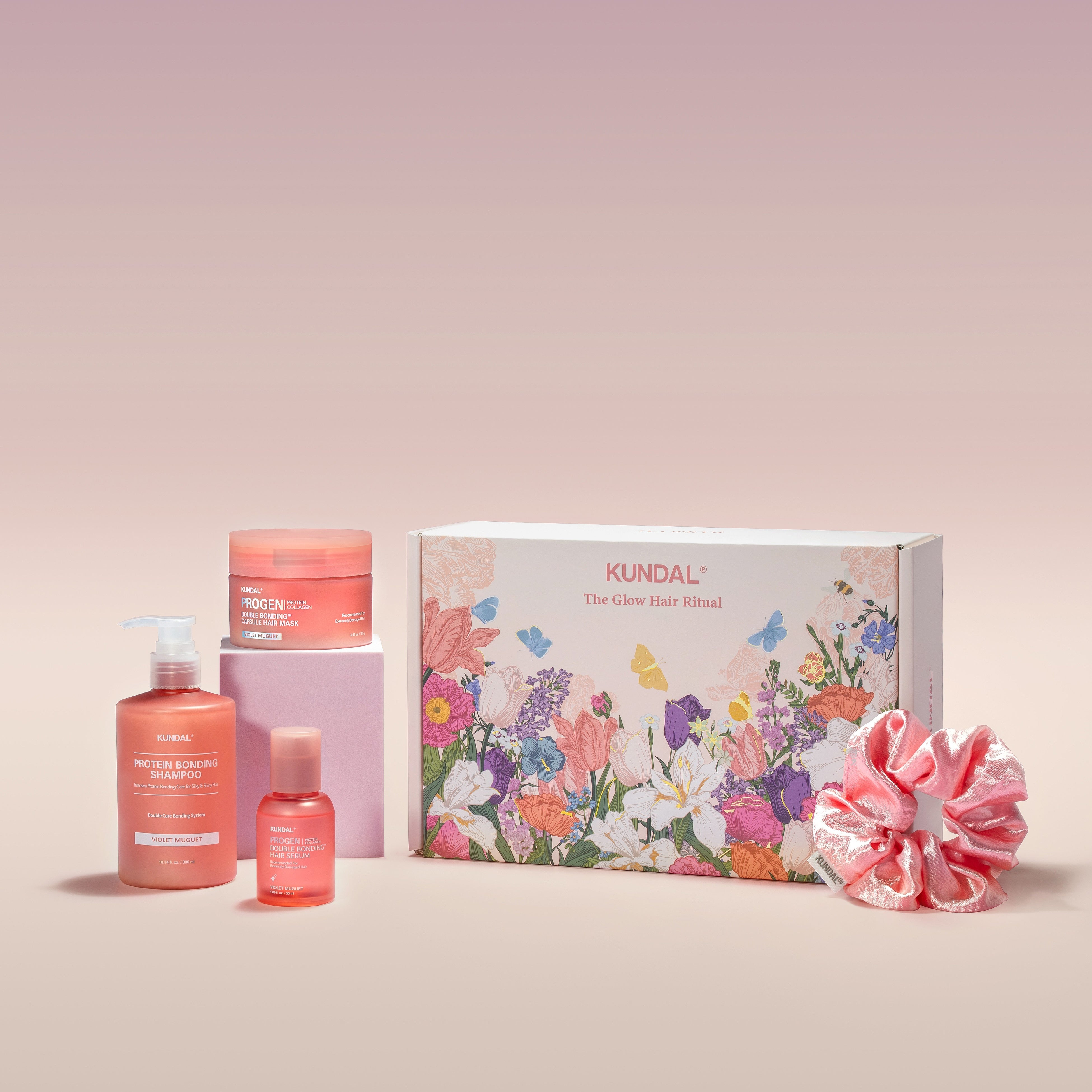本セットは、プロテインボンディングダメージヘアケアシャンプー、プロテインダブルボンディングダメージヘアマスク、プロテインダブルボンディングダメージヘアセラム(3種)で構成されています。さらに、特典として春らしいヘアシュシュをプレゼントいたします。