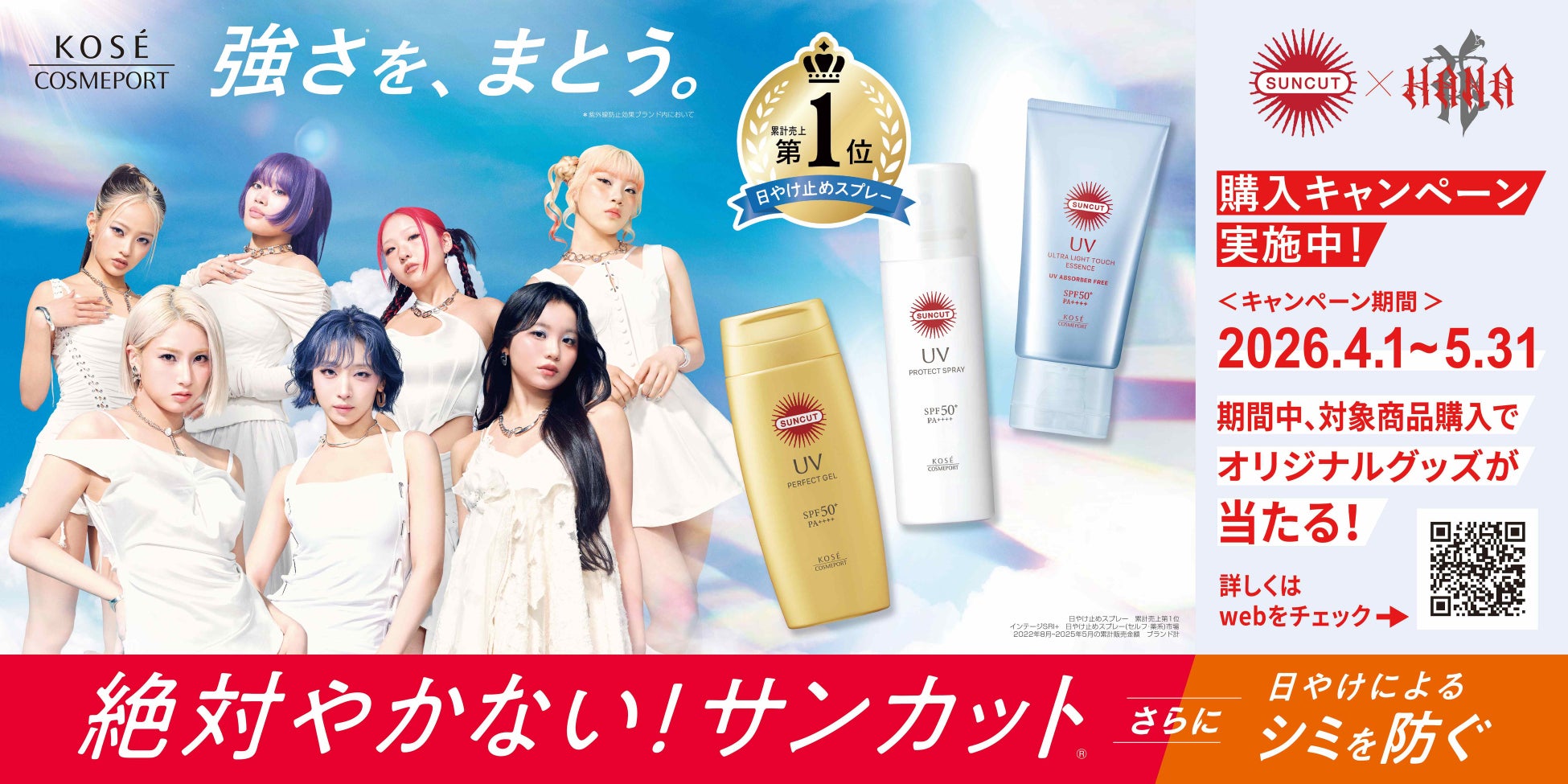 コーセーコスメポート株式会社(本社:東京都中央区、代表取締役社長:小林 孝雄)は、日やけ止めブランド『サンカット®』において、7人組ガールズグループ「HANA」とコラボし、「サンカット®︎×HANA 購入キャンペーン」を2026年4月1日(水)より開催します。キャンペーン開催に伴い、HANAが出演する新TVCM「強さ※を、まとう。」篇を公開します。2026年3月25日(水)よりYouTubeにて先行公開、4月1日(水)より全国のTVCMにて順次放映を開始します。