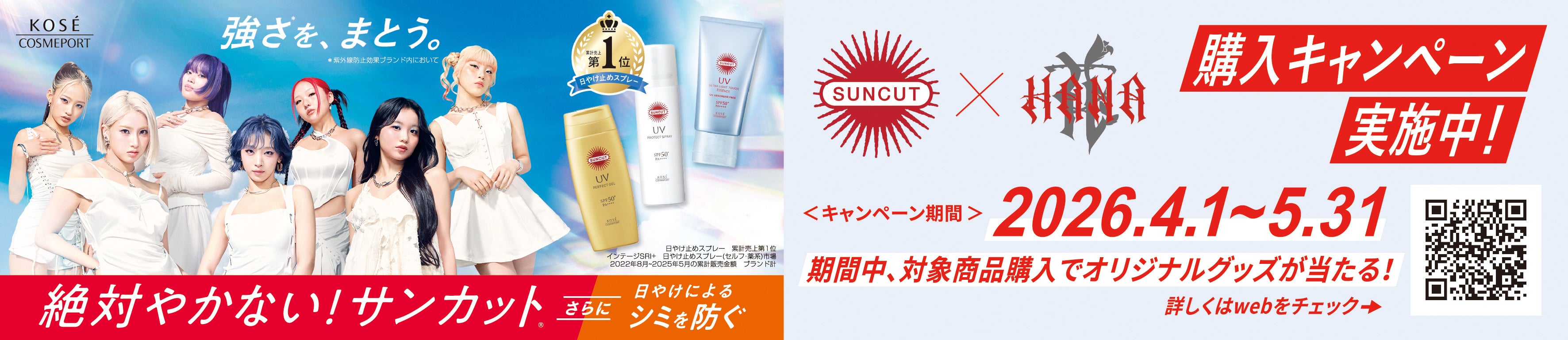 コーセーコスメポート株式会社(本社:東京都中央区、代表取締役社長:小林 孝雄)は、日やけ止めブランド『サンカット®』において、7人組ガールズグループ「HANA」とコラボし、「サンカット®︎×HANA 購入キャンペーン」を2026年4月1日(水)より開催します。キャンペーン開催に伴い、HANAが出演する新TVCM「強さ※を、まとう。」篇を公開します。2026年3月25日(水)よりYouTubeにて先行公開、4月1日(水)より全国のTVCMにて順次放映を開始します。