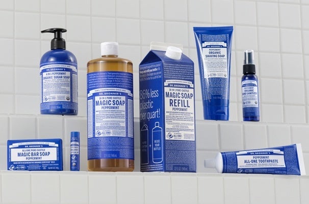 ドクターブロナーのアイテムは世界40か国以上で親しまれ、主力商品のマジックソープは、26年連続全米売上No.1*のナチュラルソープに選ばれています。