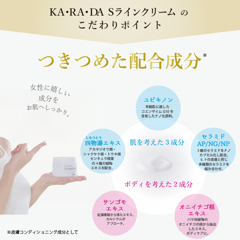 女性のためのプロユースの美容クリーム「KA・RA・DA Sラインクリーム」