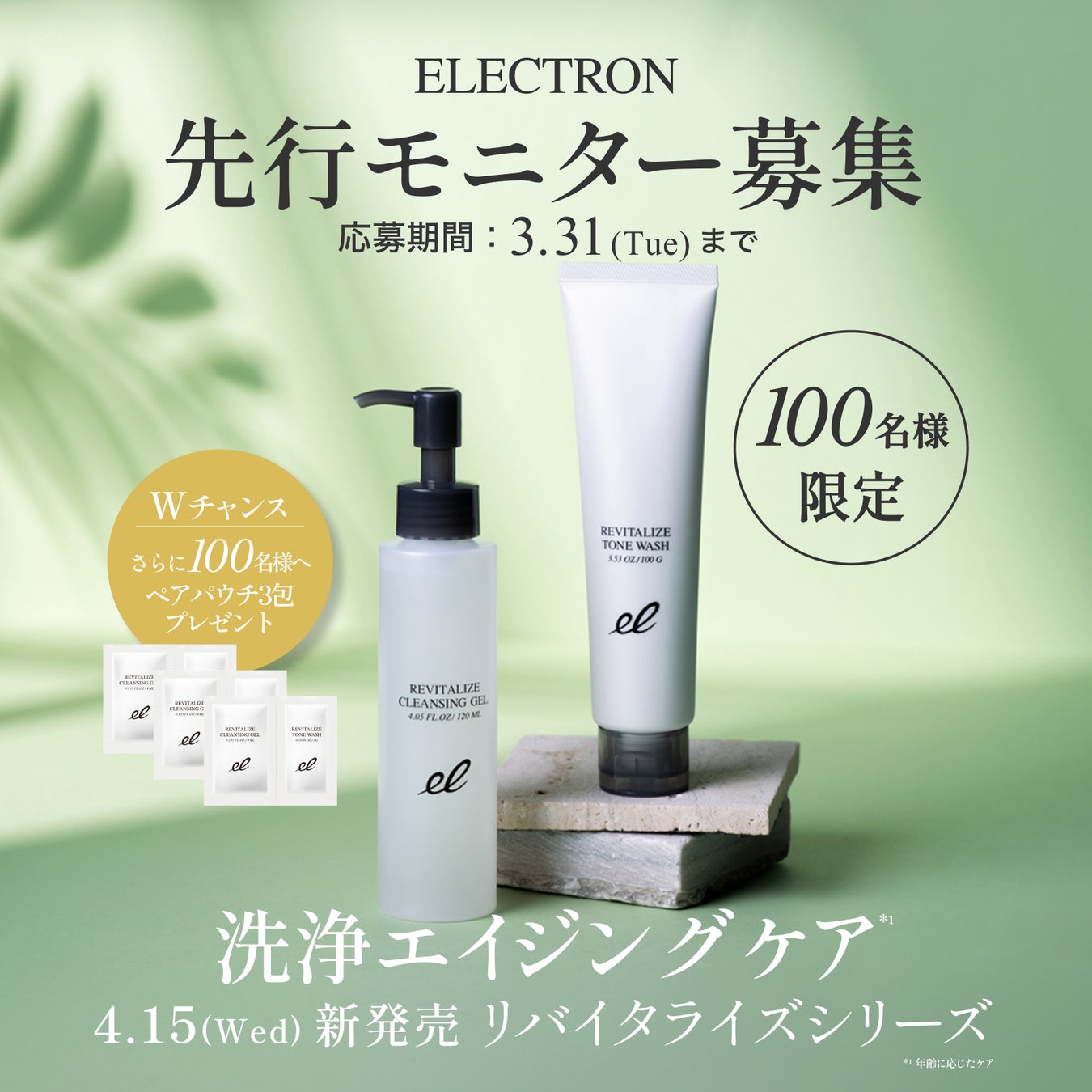 「リバイタライズシリーズ」の発売を記念して、エレクトロン公式Instagramにて、SNS先行モニターキャンペーンを実施いたします。発売前にいち早く新製品をお試しいただける機会となっており、Wチャンスもご用意しております。