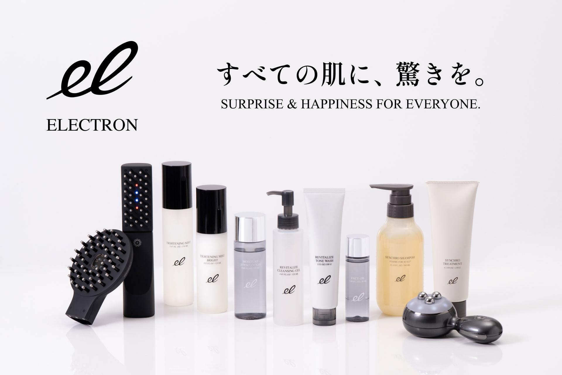 『 ELECTRON(エレクトロン)』ブランドで、ブラシ型の低周波モバイル美容機器『デンキバリブラシ®』、活性電子水™(整肌成分)をベースに、独自の加工を施した新感覚のスキンケア製品を展開。年齢・性別を超えて多くの方がより美しく、健やかになる ” 実感を伴う美容体験のデザイン ” を追求するメーカーです。