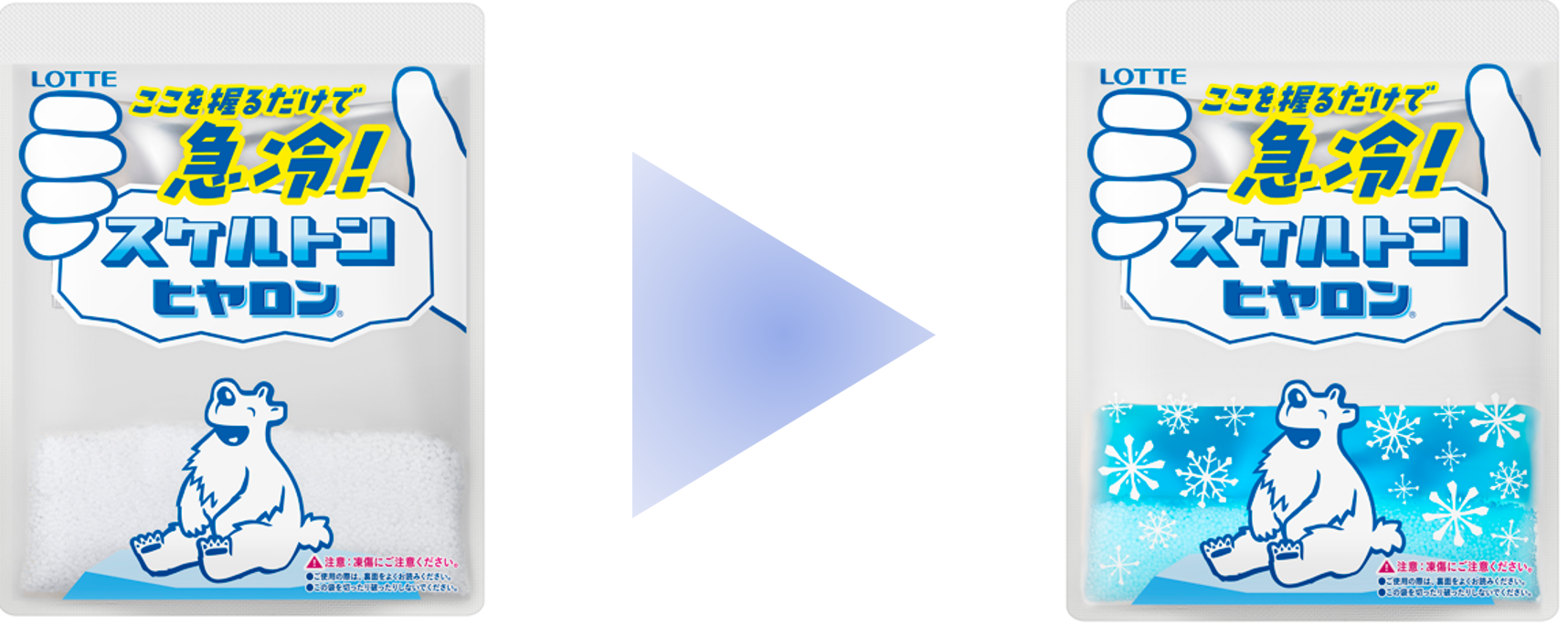 パッケージの上部を握るだけで簡単に急冷が始まり、強く叩かなくても大丈夫。力の弱い方でも、安心して使える設計です。