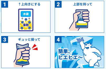 氷が用意できない場面でも、急冷することができる瞬間冷却パック!