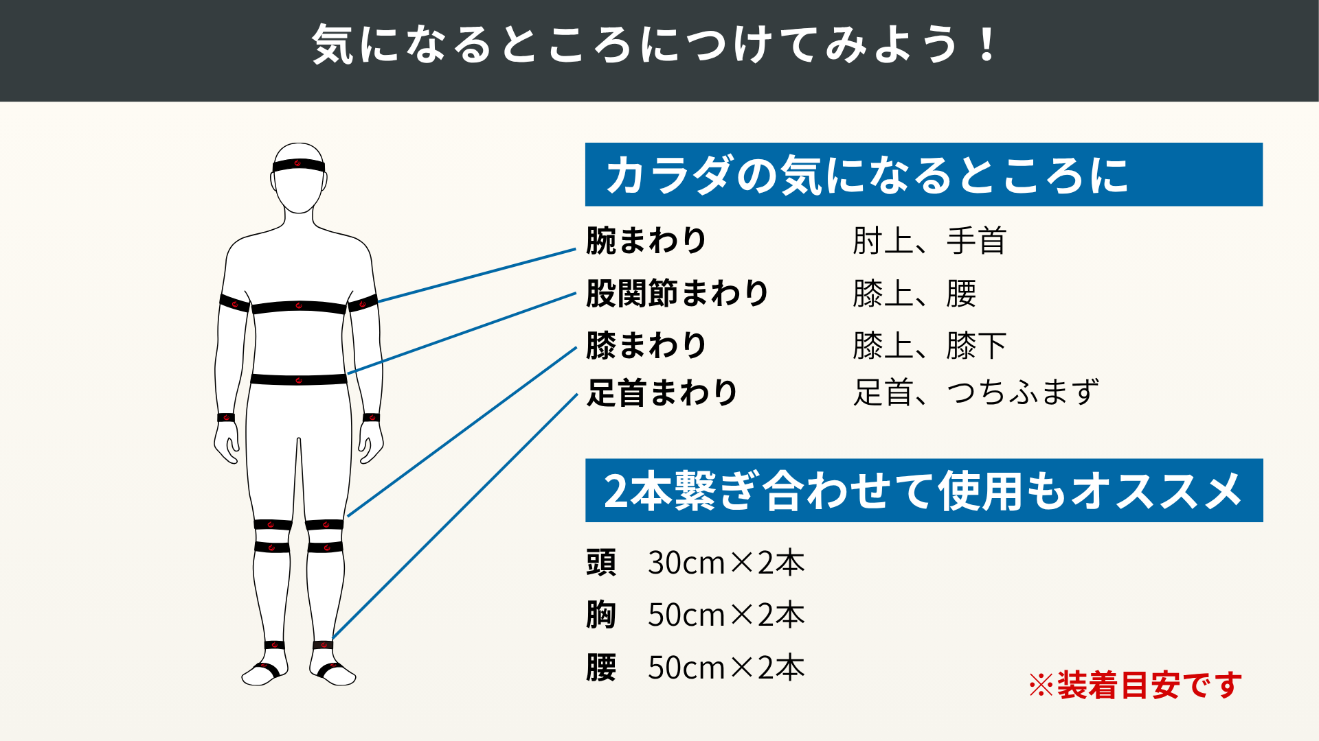 直接肌に巻くのはもちろん、服の上からでも効果を発揮するため、