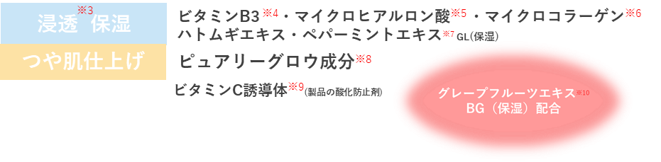 ※6 加水分解コラーゲン ※7 セイヨウハッカ葉エキス ※8 オクチルドデカノール ※9 アスコルビン酸硫酸2Na
