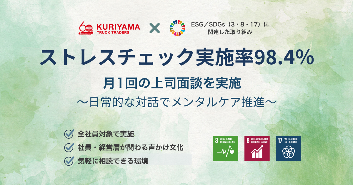 栗山自動車工業株式会社は、全社員を対象としたストレスチェックを実施し、実施率98.4%という結果となりました。