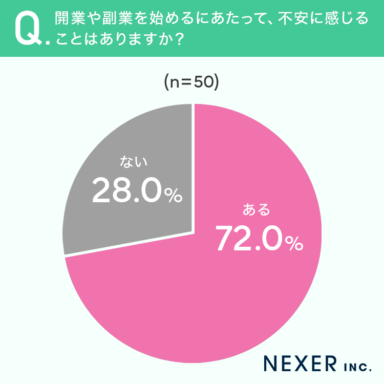 ■72.0%が、開業や副業を始めるにあたって「不安がある」と回答