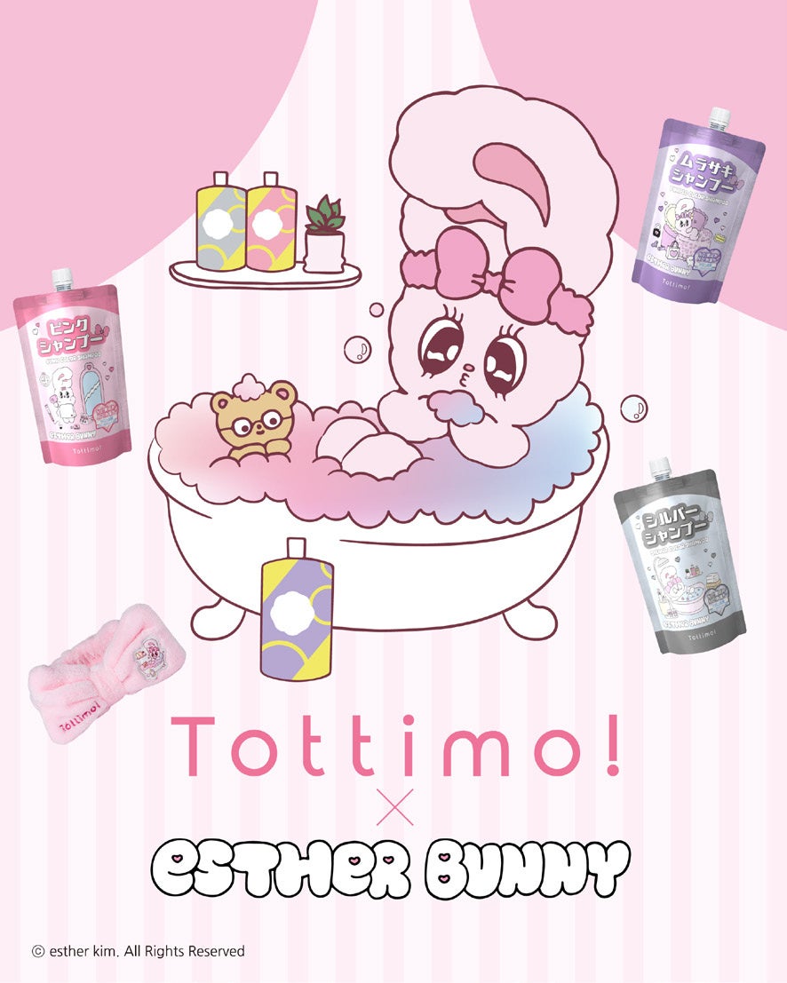 株式会社IKホールディングス(本社:愛知県名古屋市 代表取締役:長野庄吾)の100%子会社、株式会社アイケイ(本社:愛知県名古屋市 代表取締役:中島靖隆)は、おしゃれ髪を楽しむ方へ向けた望み通りのヘアスタイルへ導くヘアケアブランド「Tottimo! (トッティモ! )」より、韓国発の大人気キャラクター「Esther Bunny(エスターバニー)」とのコラボレーションによる限定デザインのカラーシャンプーを2025年4月1日より全国のドン・キホーテにて数量限定で発売いたします。