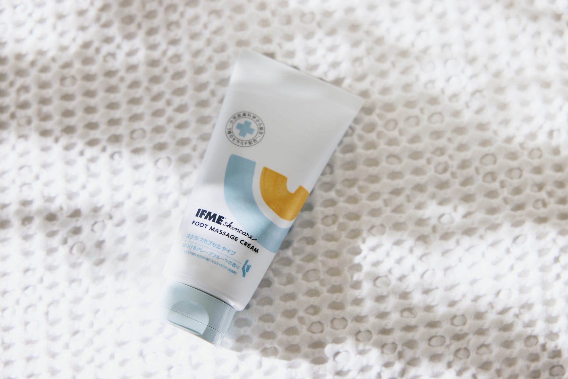 「IFME フットマッサージクリーム」は、フットマッサージにぴったりな伸びやかなテクスチャーで、足の裏から指先、足全体まで心地よく保湿ケアできるクリームです。グレープフルーツエキスを包み込んだつぶつぶカプセルが、やさしい刺激でマッサージをサポートし、親子のケアタイムをさわやかに演出します。さらにカキタンニンエキスを配合した、足元のエチケットケア発想も取り入れた処方。子どもだけでなく、大人のフットマッサージにもおすすめです。