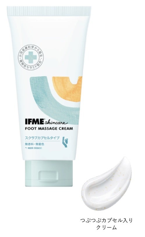 「IFME フットマッサージクリーム」は、フットマッサージにぴったりな伸びやかなテクスチャーで、足の裏から指先、足全体まで心地よく保湿ケアできるクリームです。グレープフルーツエキスを包み込んだつぶつぶカプセルが、やさしい刺激でマッサージをサポートし、親子のケアタイムをさわやかに演出します。さらにカキタンニンエキスを配合した、足元のエチケットケア発想も取り入れた処方。子どもだけでなく、大人のフットマッサージにもおすすめです。