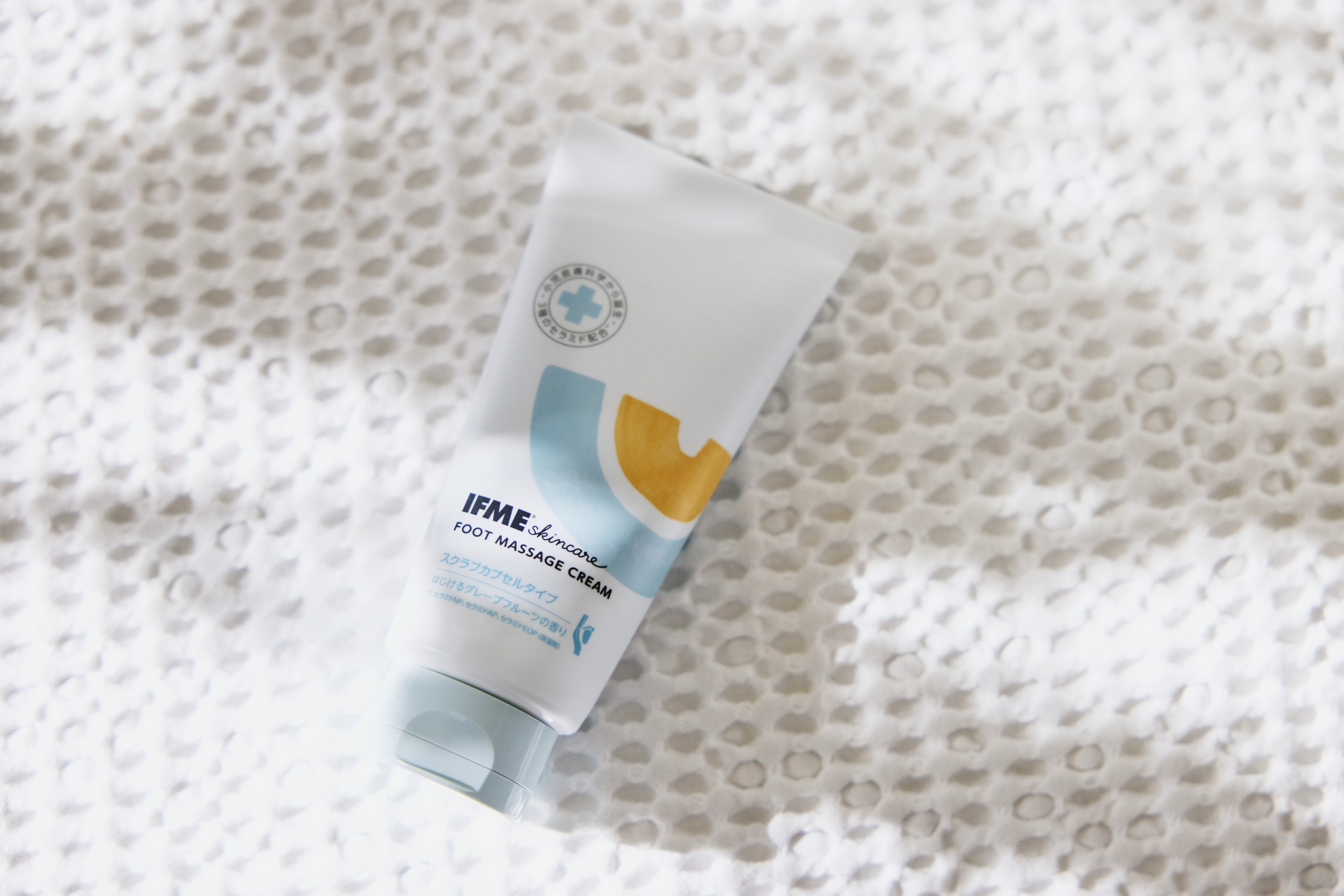 一方で、靴づくりを続ける中で寄せられる子どもの足にまつわる親の悩みには、足もとの乾燥や清潔感など、靴だけではアプローチしきれない日々のケアを必要とするものも多くあります。こうした悩みに着目して、今回エステティシャンの髙橋ミカさんに監修いただき、家庭でも親子で毎日楽しく取り入れられるフットケアを目指して開発したのが、「IFME フットマッサージクリーム」です。